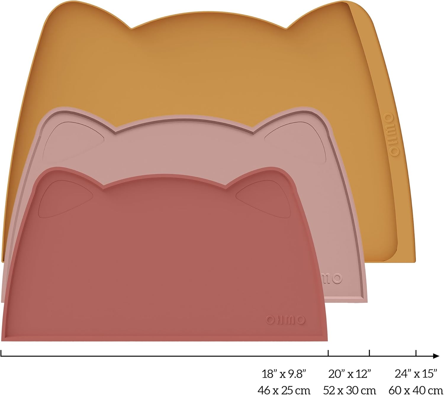 OHMO - Cat Food Mat, Silicone Pet Feeding Mat for Floor Non-Skid Waterproof Dog Water Bowl Tray, Easy to Clean Pet Placemat (Erythrinus, 18 * 9.8'')