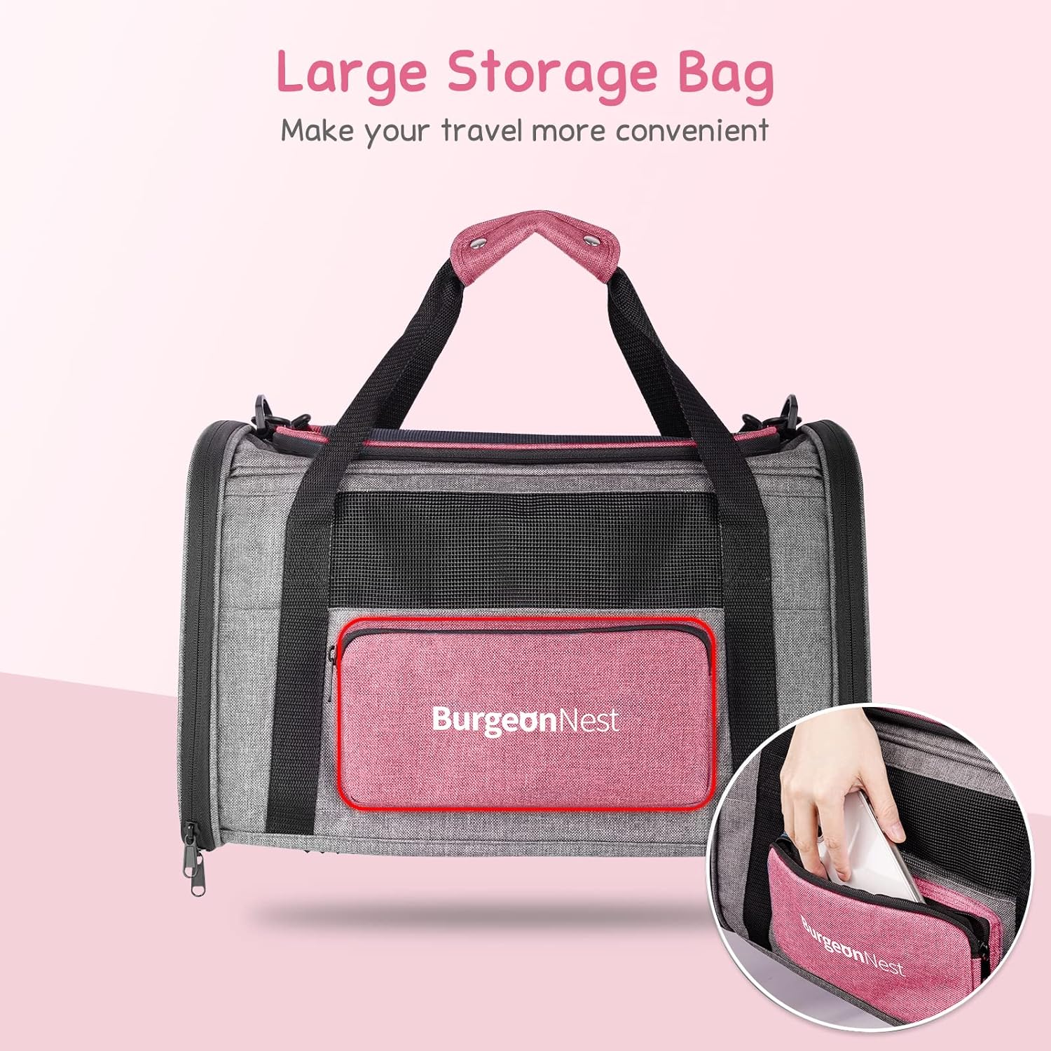 - Large Unique Side Bag: Storage bag is bright-pink, very fashional collapsible cat carrier. Break the dullness! Bag on the side can hold garbage bags, food or folding bowl for your pets.