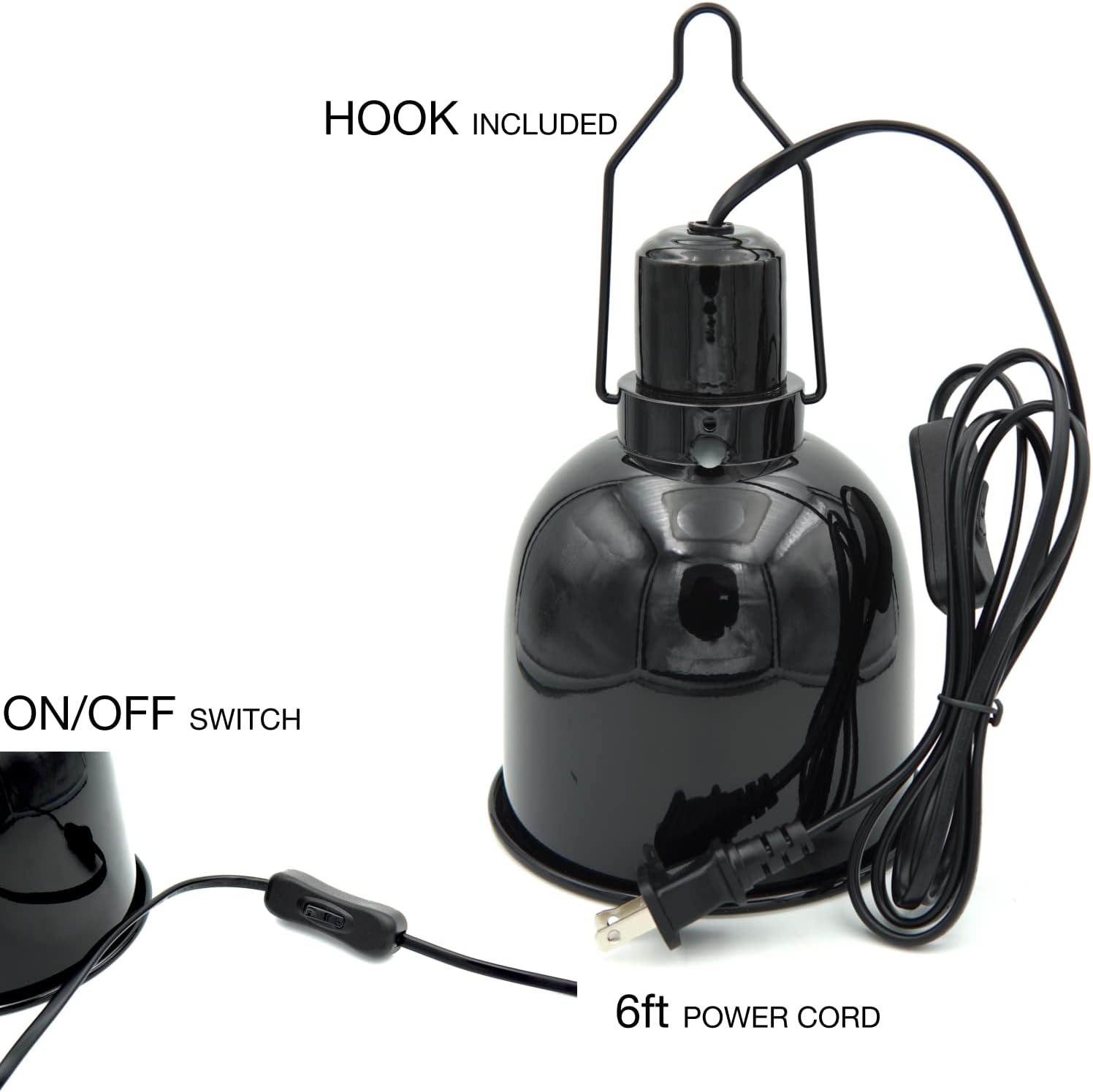 - The light can be easily turned on and off by the On/Off switch, mounted on the extra long power cord (180 cm/6 ft).
