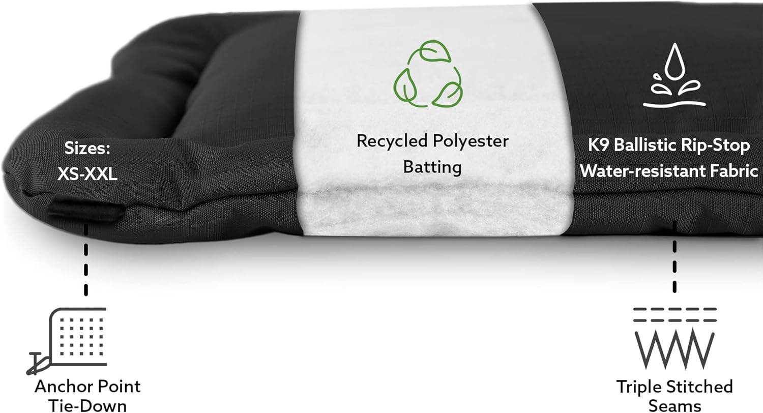 • Durable Ripstop Ballistic Exterior: The heavy-duty cover will withstand scratching, digging, and occasional mouthing or chewing. Great for dogs that like to get a little rough with their beds! For dogs that tend to chew heavily when crated, especially due to anxiety, we recommend one of our Chew Proof Armored Padded Dog Crate beds instead.