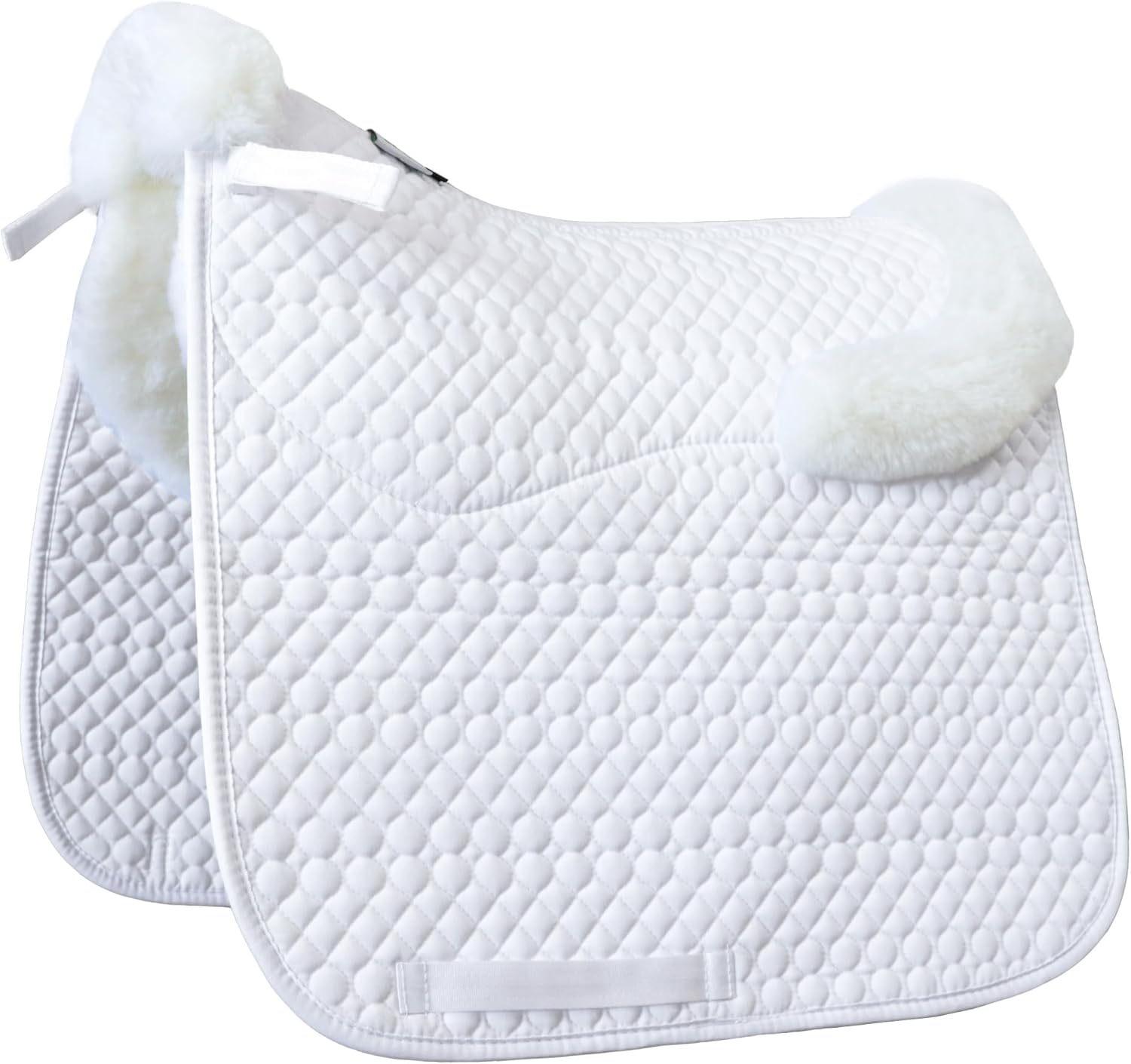 Woolous Dressage Saddle Pad, English Saddle Pad with Sheepskin Trim, Lambskin Wool Fleece Lining, Square Saddle Pad for Equestrian Riding, Comfortable & Shock Absorbing