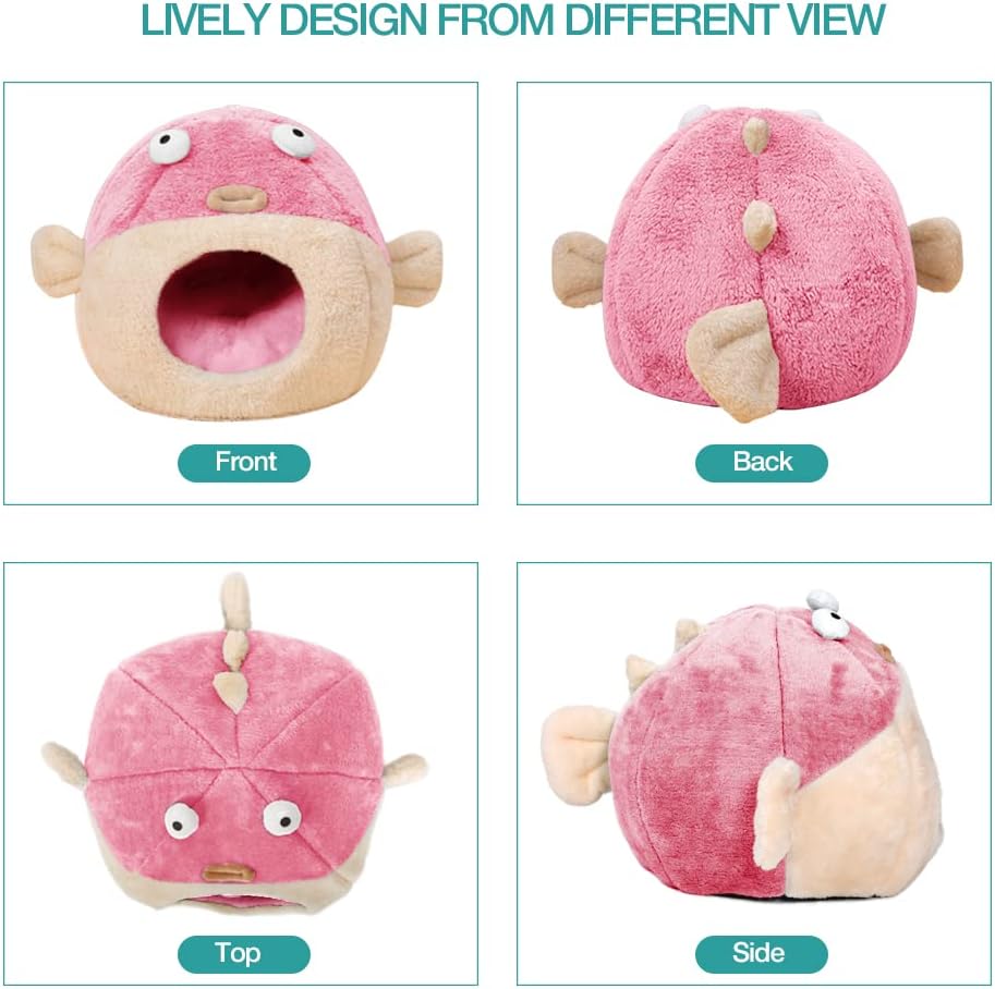 - 【2-IN-7 USE AND PUFFERFISH DESIGN】 Our cat bed not only can be used as a cave cat bed, but also can be used a cat bed mat when you press down the cover and then put the pillow on it. It is a good deal! The Lively pufferfish design adds much fun to your kitten's sleeping time. They will enjoy them