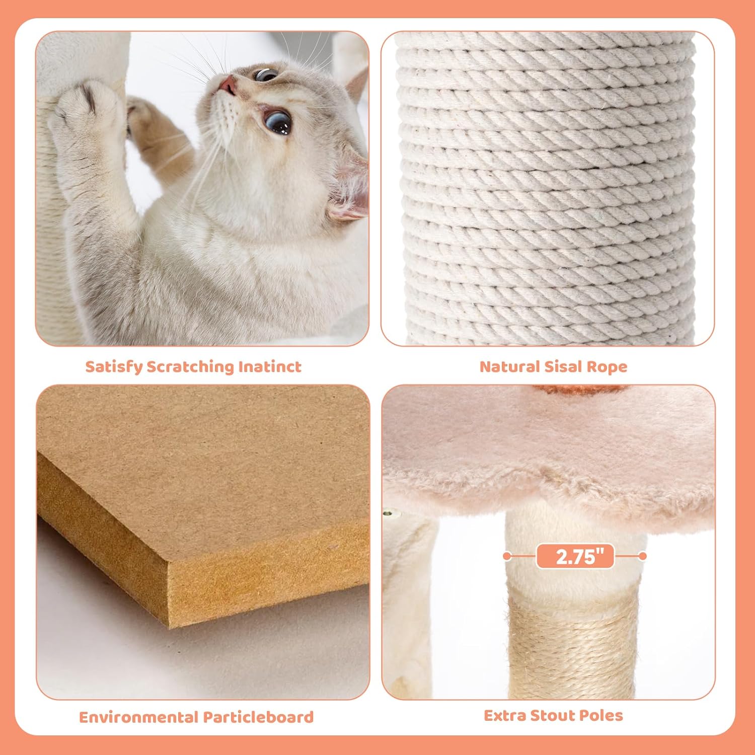 - Chic Flower Design: The unique flower-themed cat tree not only offers endless entertainment for your cats but also serves as a stylish home decor piece, enhancing the aesthetic appeal of your living space.