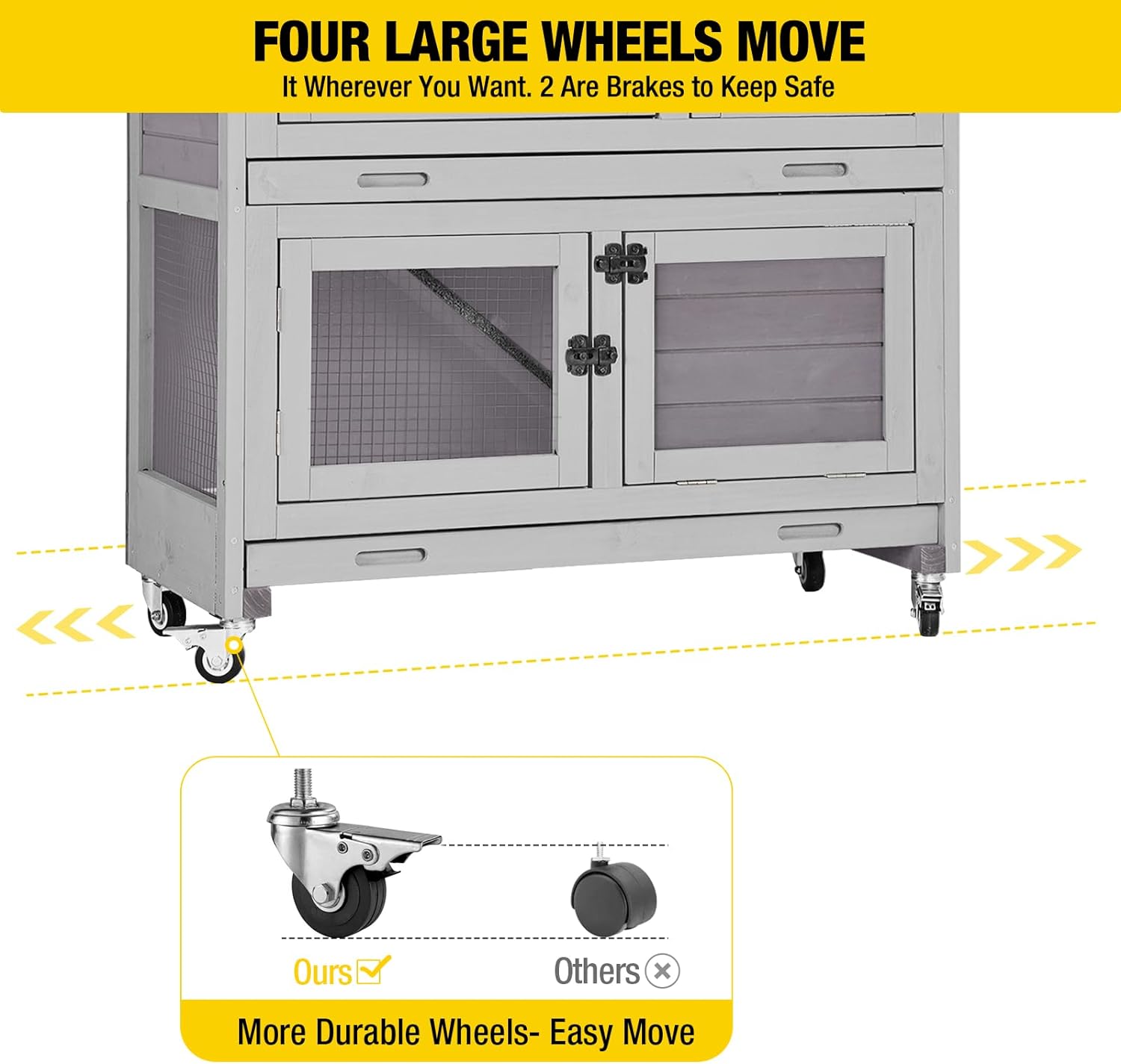 - Easy Movement: Four stronger metal wheels to easily move the rabbit hutch and quickly. Two are brakes to fix well and keep safe