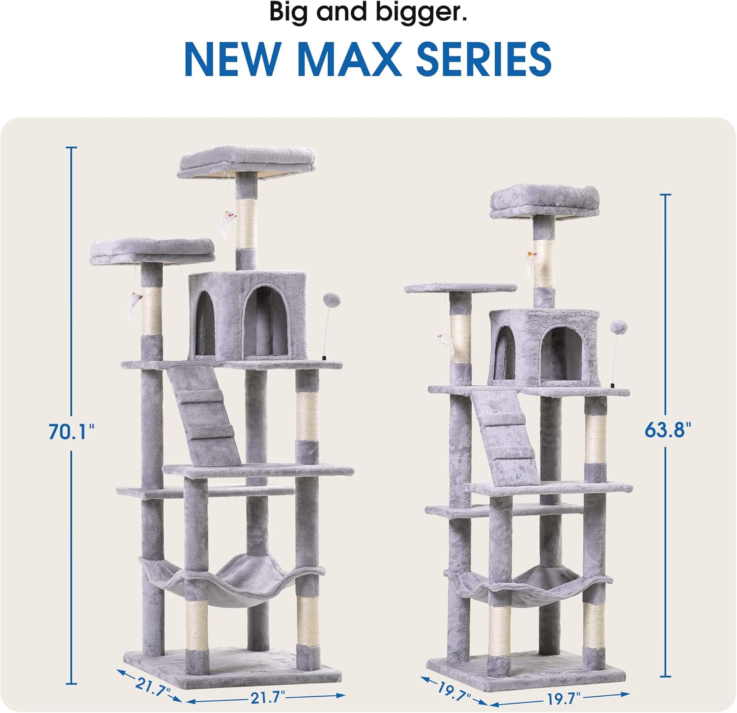 - More Space, More Stable: This large cat tree features a sturdy structure with a reinforced baseboard and anti-tip strap for cat to have fun, hide, and play, even multiple cats