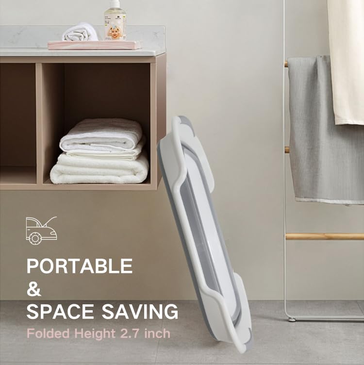 • 【Space Saving with Expanded Size】23.6 x 15.7 x 10.8 inches, 2.7 inches height when folding, you can easily hang it on the wall or storage it in narrow space where fits. This collapsible bathtub for newborn is about 2.8 pounds.
