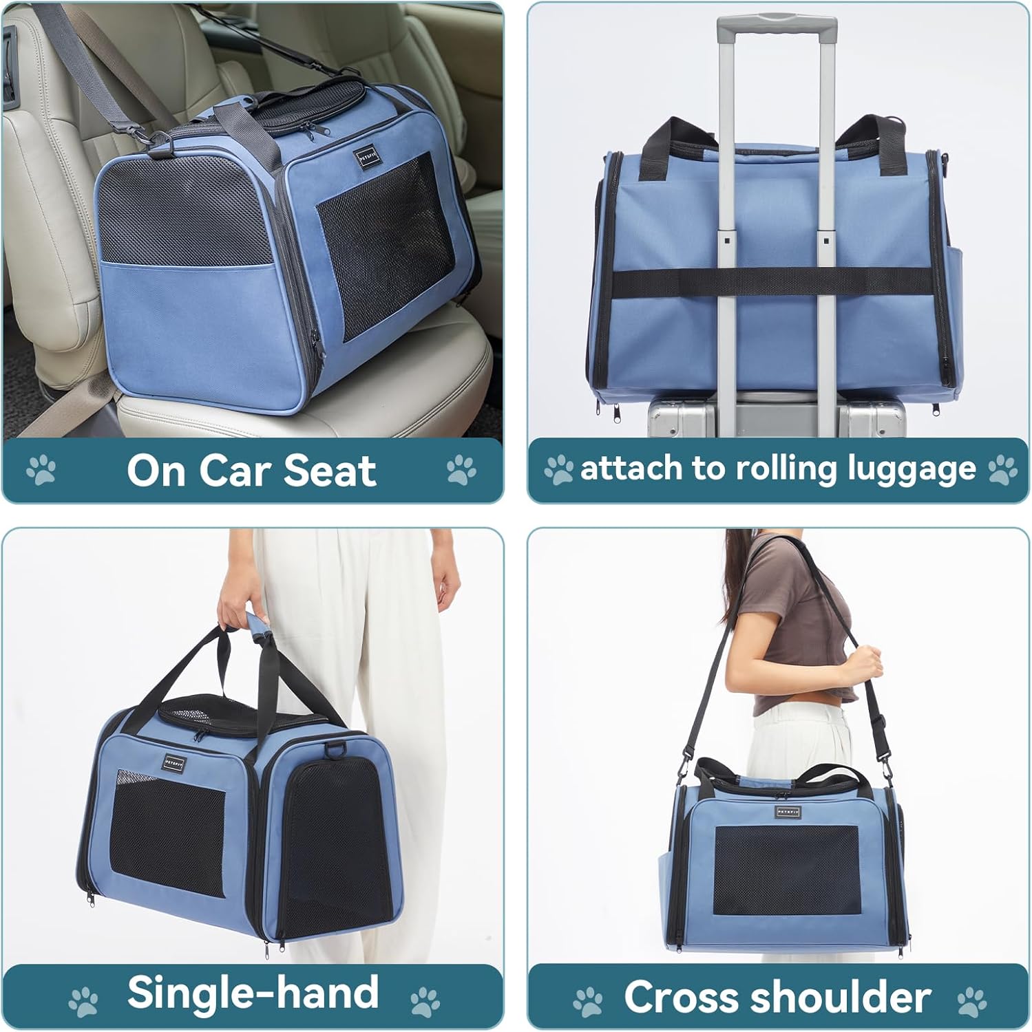 • [Dog Carrier for Small Dogs] The dog carrier comes with an extendable cozy fleece pet mat, which offers extra sleeping space for your traveling pet. The upgraded version has more comfortable space, suitable for all sizes of cats and small dogs.