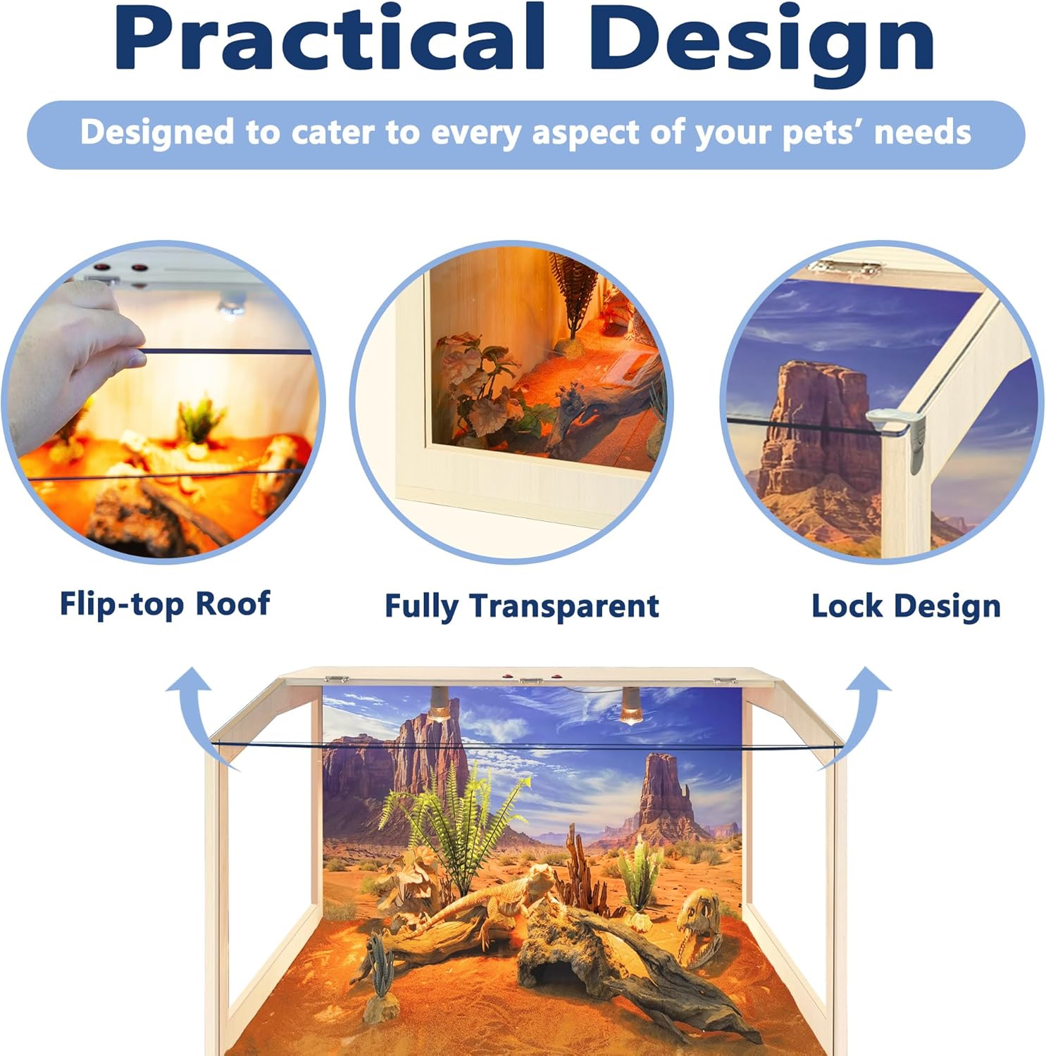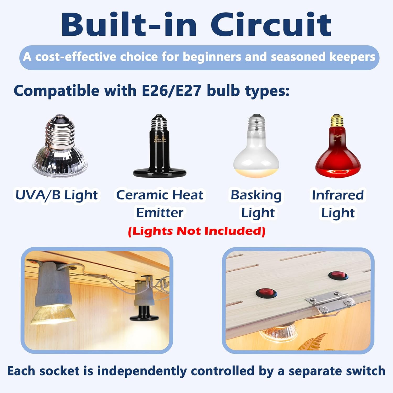 • 【Convenient Bulb Sockets】Equipped with built-in bulb sockets and switches (three in the 40/48-inch version), our terrarium accommodates various E27 bulbs for heating, lighting, and night illumination (bulbs not included). Installing the lights is a breeze, making it an ideal habitat for your reptiles.