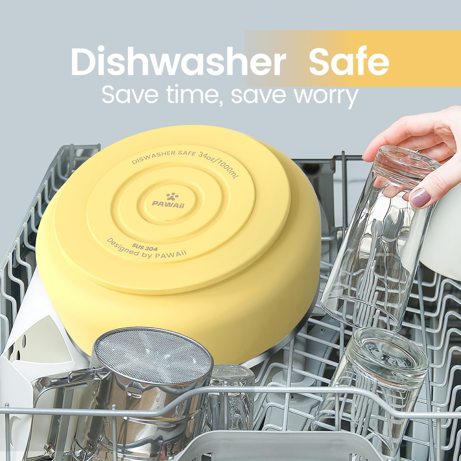 - š šš«ššš³š ššØ šš„ššš§: You can wash this dog feeder in a dishwasher or manually. Pawaii stainless steel dog bowl repels oil, does not hide dirt, and can be cleaned by simple flushing.