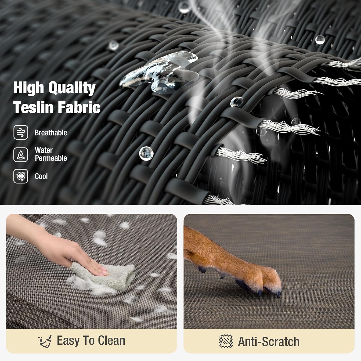 - All-Season Comfort: The Teslin Mesh mat not only allows the air to flow, but also allows the water to penetrate, keeping your pet cool in summer; The elevated dog bed lifts your dog 8.2 inches off the hard ground, mud or wet grass, alleviating joints pressure and keeping health