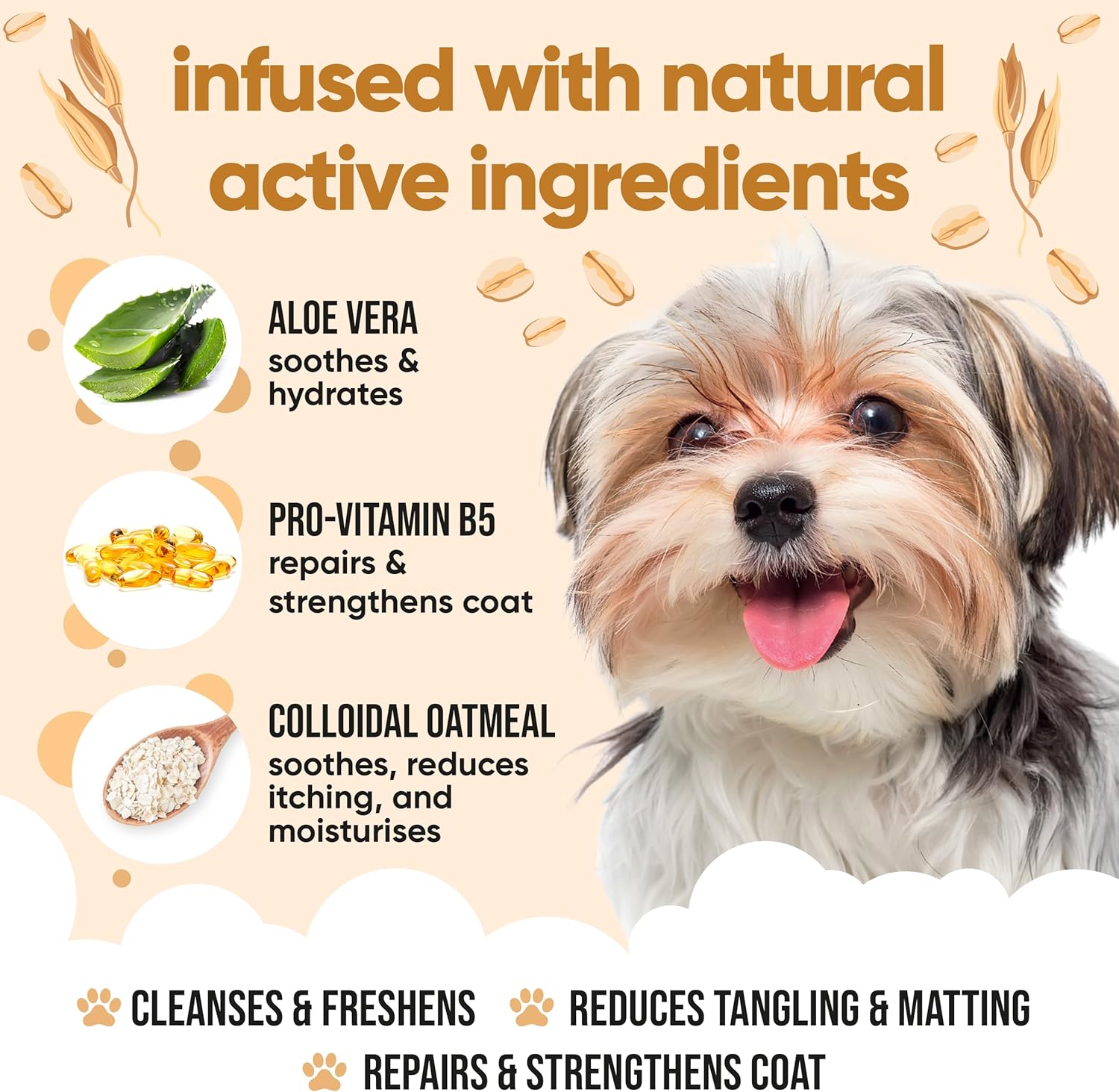 Oatmeal Dog Shampoo for Smelly Dogs (33.8oz) - Hypoallergenic & Itch Relief Formula, Gentle on Sensitive Skin, Includes Dog Shampoo and Conditioner - Essential Dog Grooming Supplies