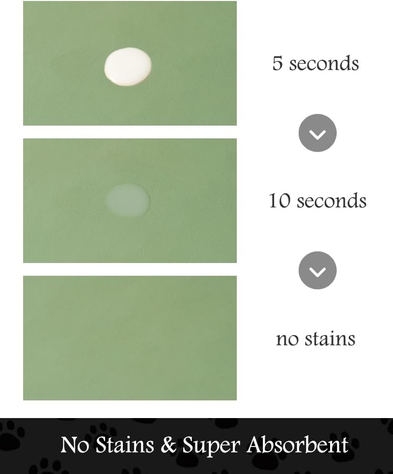 • Super Absorbent & Durable: Perfect pet supplies.This pet food mat can prevent liquid from overflowing. Super absorbent and quick-drying ability to avoid wetting pet paws even for messy drinkers. Sturdy dog & cat food bowl mat cannot be torn easily and avoid eating by mistake. Keep the pet's eating environment tidy and clean.