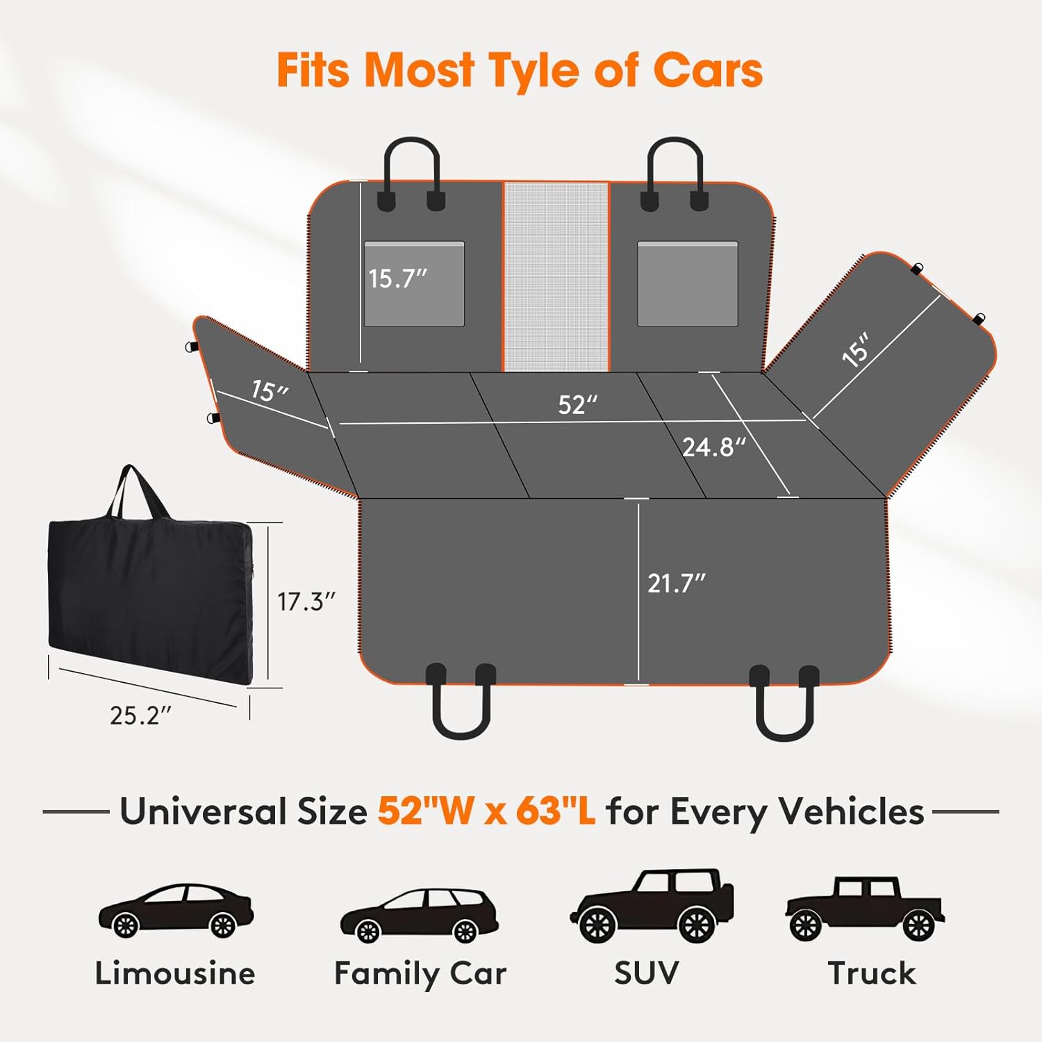 • 【Multifunctional Seat Cover】When you get the MIXJOY Upgraded dog seat cover, you will enjoy this 4 styles and also helps to protect the leather seat. It can also serve as a sleeping pad or for other uses. Can be easily converted dog hammock style, cargo liner style, picnic seat cover blanket. And the universal size of 52"W x 63"L back seat dog cover for car to be used in family cars, trucks and SUVs.The back seat protector for dog is great present for every pet lover.