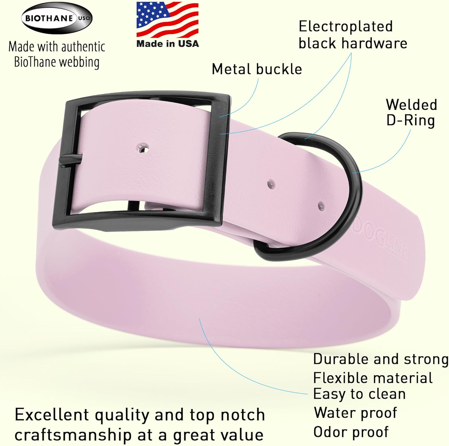 Dogline Biothane Waterproof Dog Collar Strong Coated Nylon Webbing with Black Hardware Odor- Proof for Easy Care Easy to Clean High Performance Fits Small Medium or Large Dogs, Pastel Purple