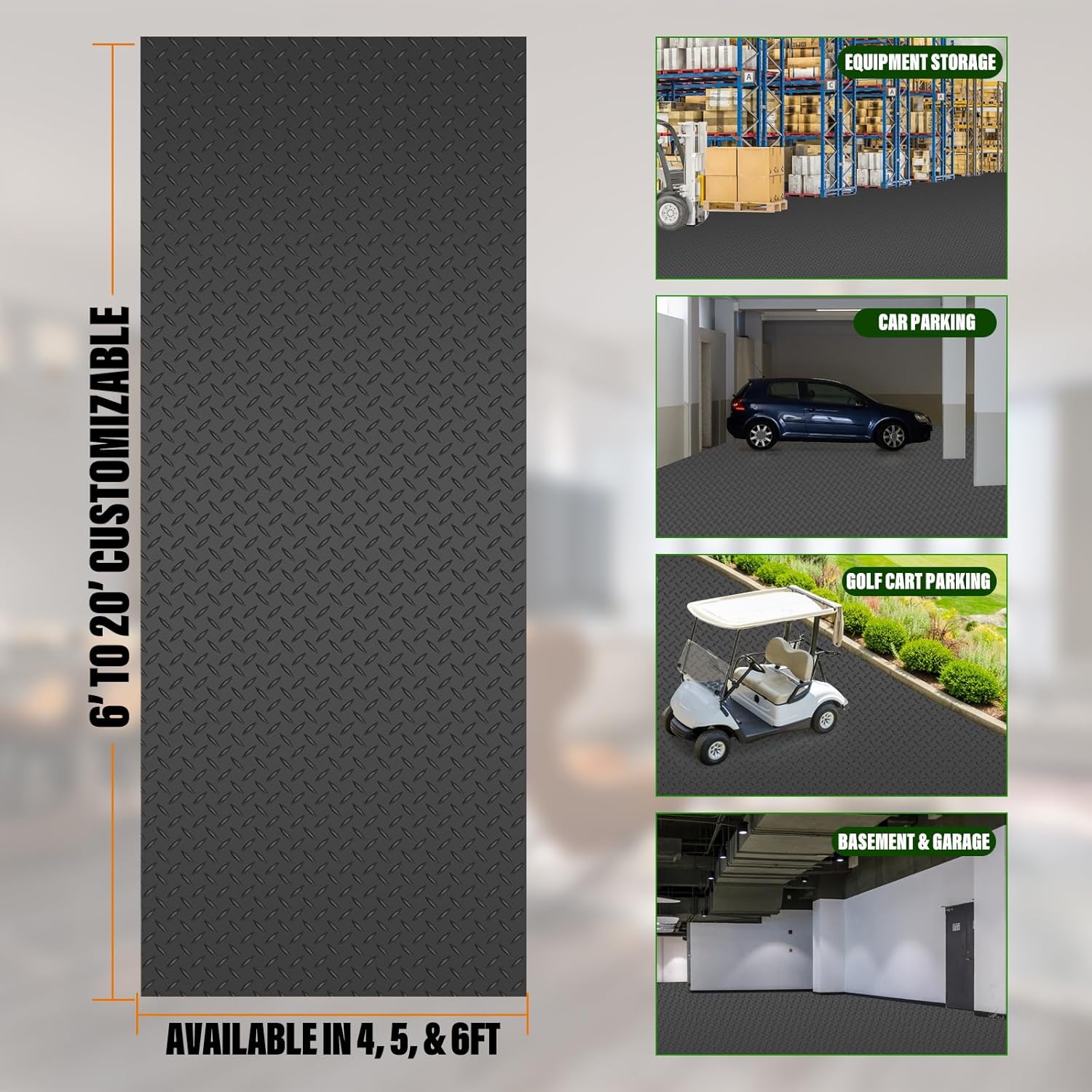 SEAL 6 x 20 Ft Premium Garage Floor Mat, Solid 2.8mm Thickened Black Commercial Grade Heavy Duty Parking Mat for Garage Floor, Golf Cart, Water/Stain Resistant Floor Runner (Embossed Diamond Plate)
