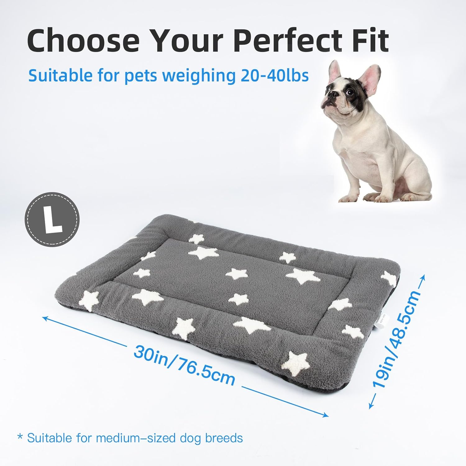 Mora Pets Dog Crate Pad Kennel Dog Bed Mat for Medium Dogs Washable Cute Star Pet Bed for Cage Ultra Soft Flat Puppy Cat Kitten Cushion for Sleeping Anti-Slip Grey 30 x 19