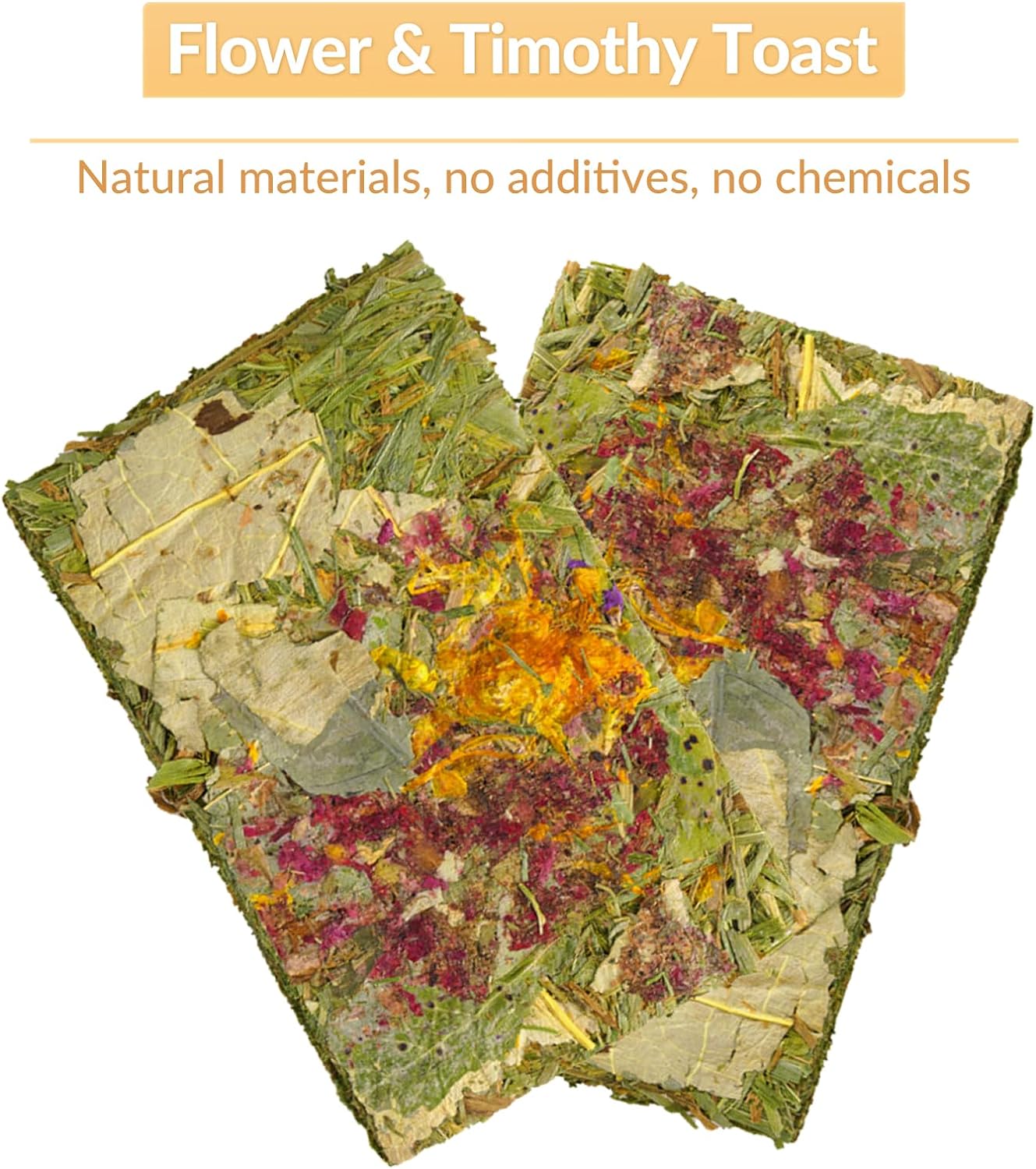 • 【List of Packages for Bunny Treats】This bunny treats set contains: 2 x Dandelion Timothy Grass Toast, 5 x Sweet Bamboo Sticks, 110g Apple Sticks, 5 x Timothy Grass Sticks, 10 x Timothy Grass Flower Sticks, and 4 x Timothy Grass Cakes. The total quantity is about 50-60 pieces, enough to meet a hamster's long-term chewing needs.