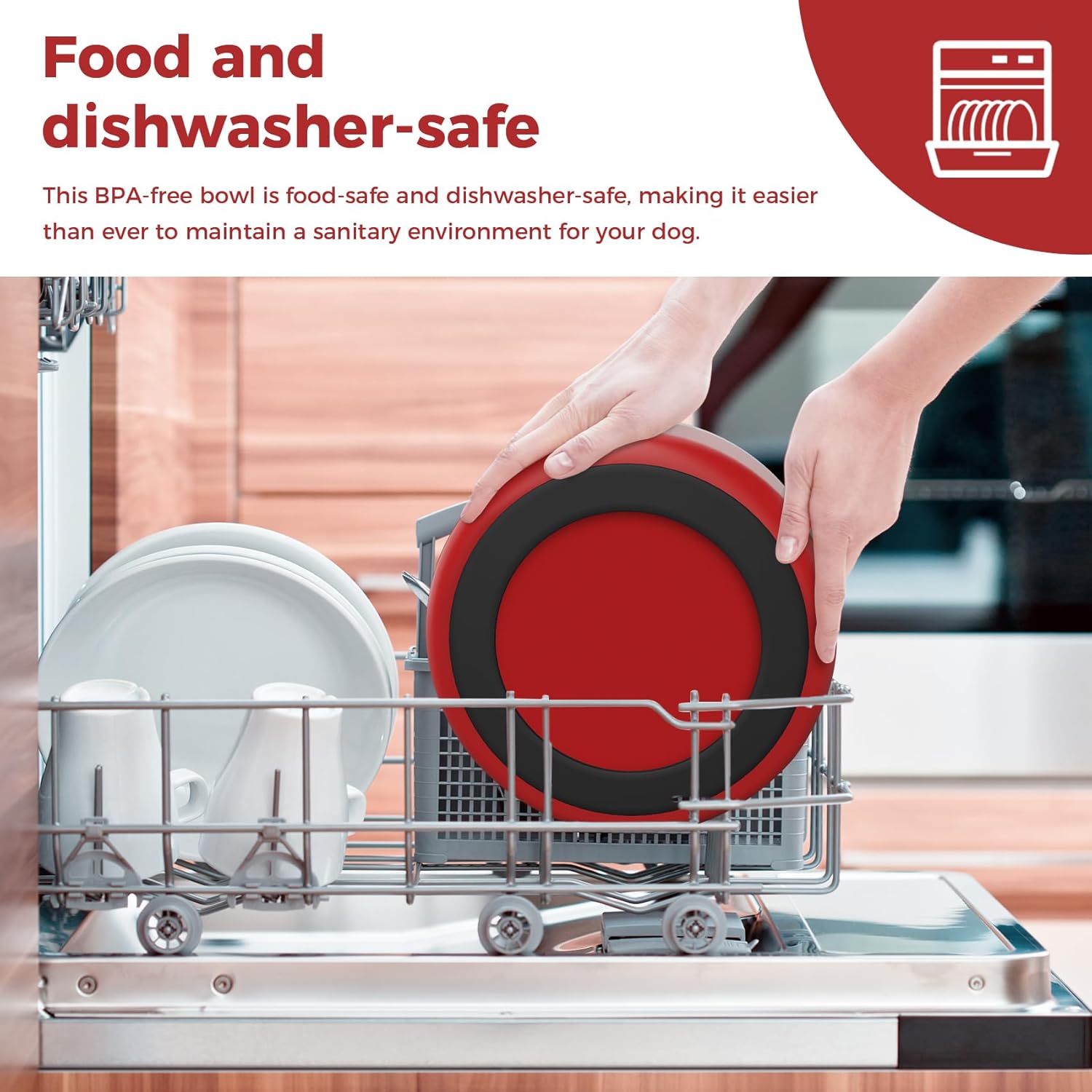 Dog Bowl, Stainless Steel Dog Food and Water Bowl with Non Slip Quiet Bottom, Easy to Clean, Dishwasher Safe, 40oz, Red