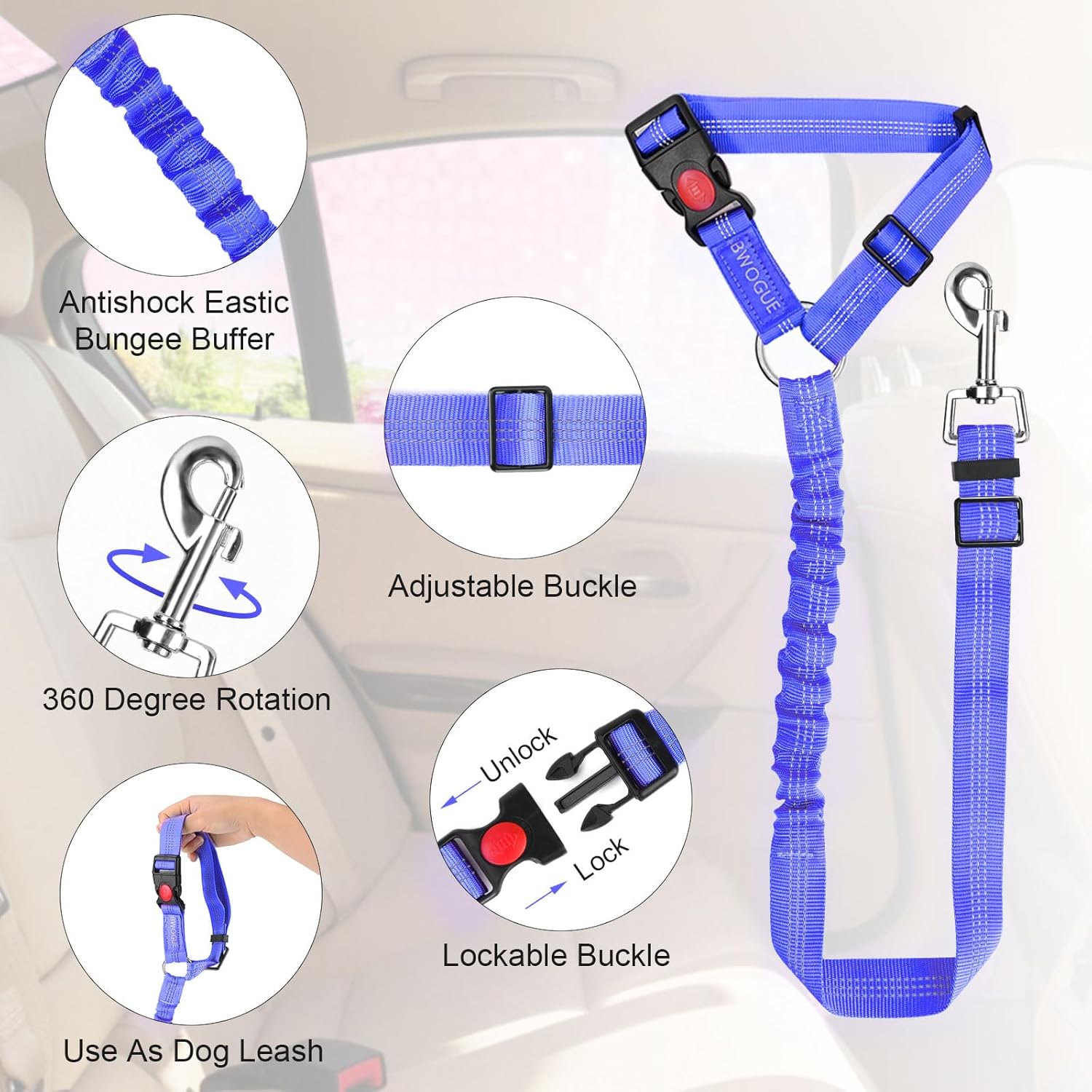 • HIGH QUALITY: Made of high quality nylon fabric to ensure safety, features the solid zinc alloy swivel snap,elastic bungee and quality buckles, The reflective stitching design makes it great for night time use. The elastic bungee helps dog prevent jerking with sudden movement. the pet car seat belt ensures the most safest traveling for your pet, and provides a most relaxing driving experience for you.