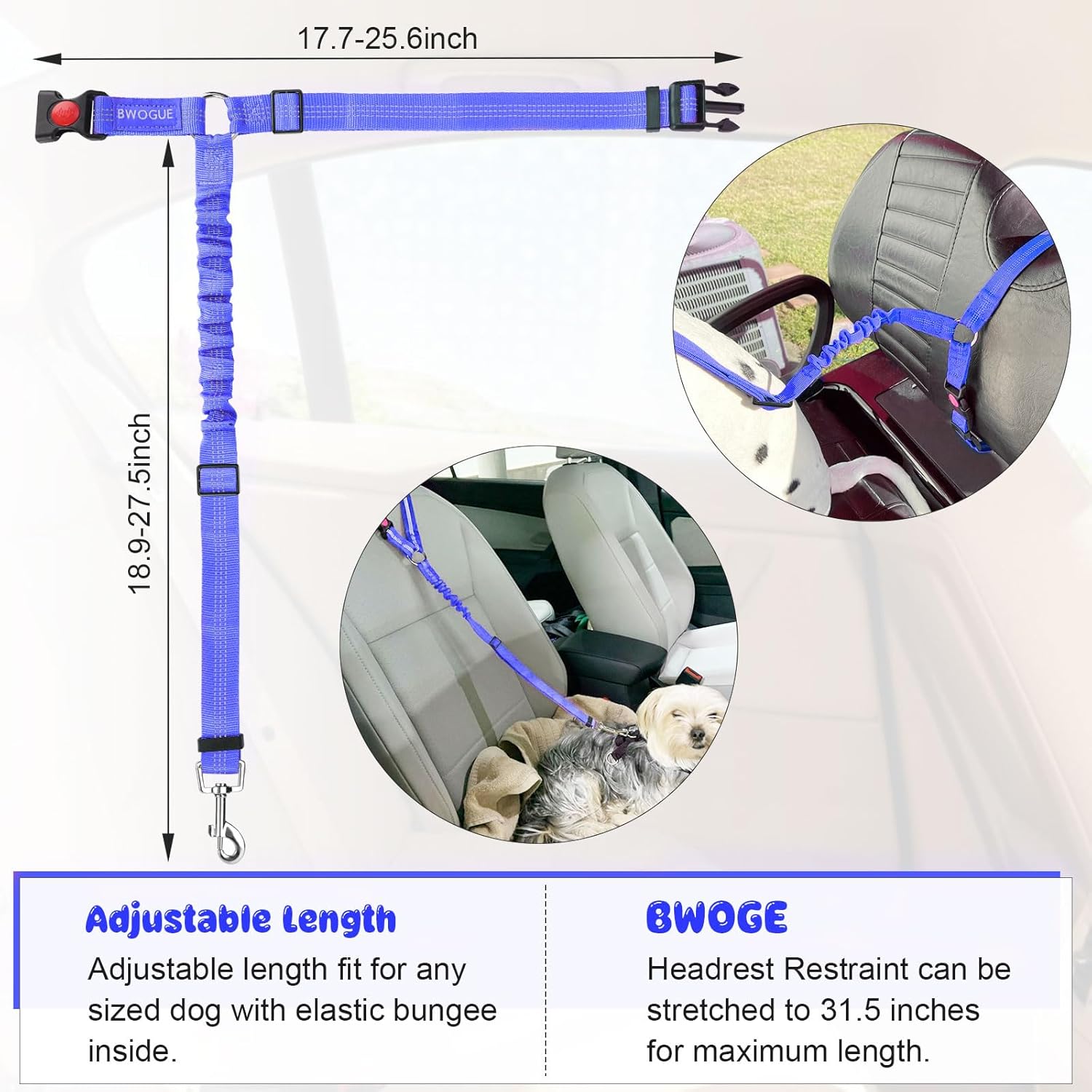 BWOGUE Pet Dog Cat Seat Belts, Car Headrest Restraint Adjustable Safety Leads Vehicle Seatbelt Harness (1 Pack)
