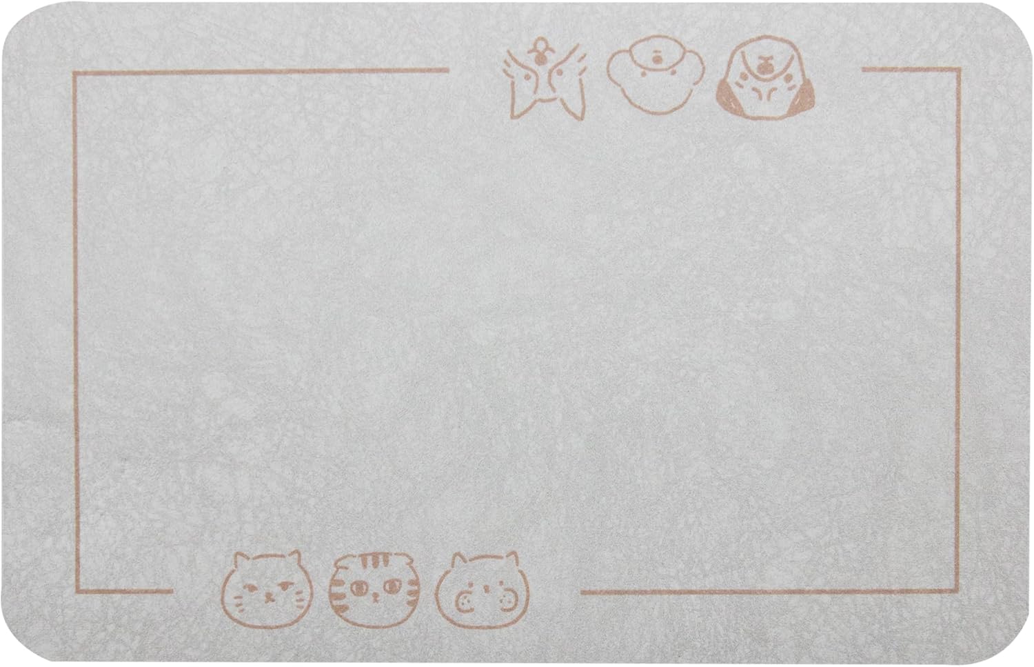 YCT Cat Pet Food Mat - Non-Slip Bottom Absorbent Quick Dry Feeding Mat for Dogs and Cats - Pet Supplies, 16.9"x24" Beige