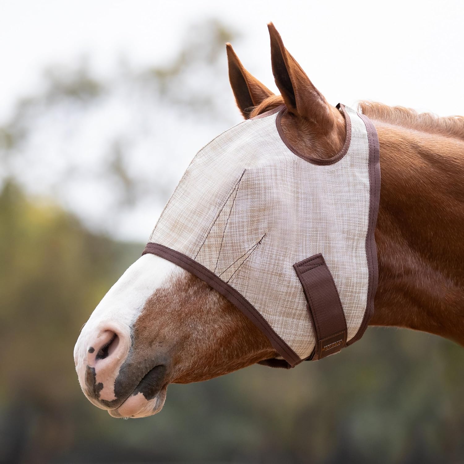 Kensington UV Horse Fly Mask with Web Trim - Protective Mask with Dual Ear Opening & Forelock Freedom - Medium, Desert Sand