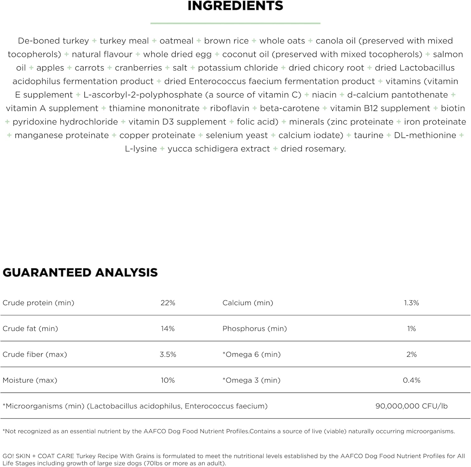 Go! Solutions Skin + Coat Care, Dry Dog Food, Turkey Recipe with Grains, 22 lb Bag