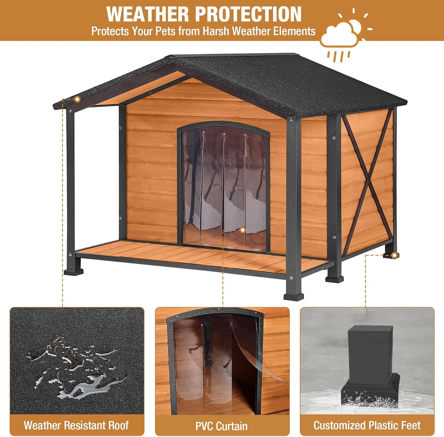 Extra Large Dog House Outdoor Weatherproof, Strong Metal Chew Proof Frame Dog Kennel for Small Medium Large Dogs