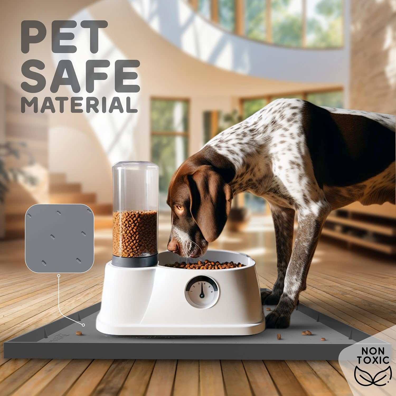 - WATERPROOF DESIGN PROTECTS FLOORS: Adios to water damage and unsightly bowl scrapes! Our dog water mat is designed to keep your floors safe and clean, trapping any spills or crumbs before they can harden into place. Keep your home looking its best with this essential accessory!