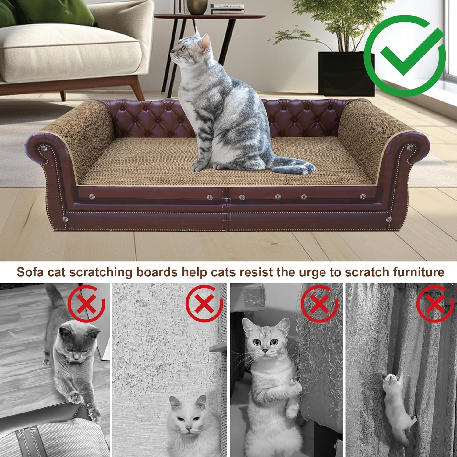 • Cat Scratch Sofa: The sofa cat scratching board is available in a variety of sizes and you can choose the right size for your cat. Dimensions :39.4"L X 14"W X 11"H. Cat couch bed has a lot of cat space, enough for multiple cats to sleep, play, roll around and scratch.