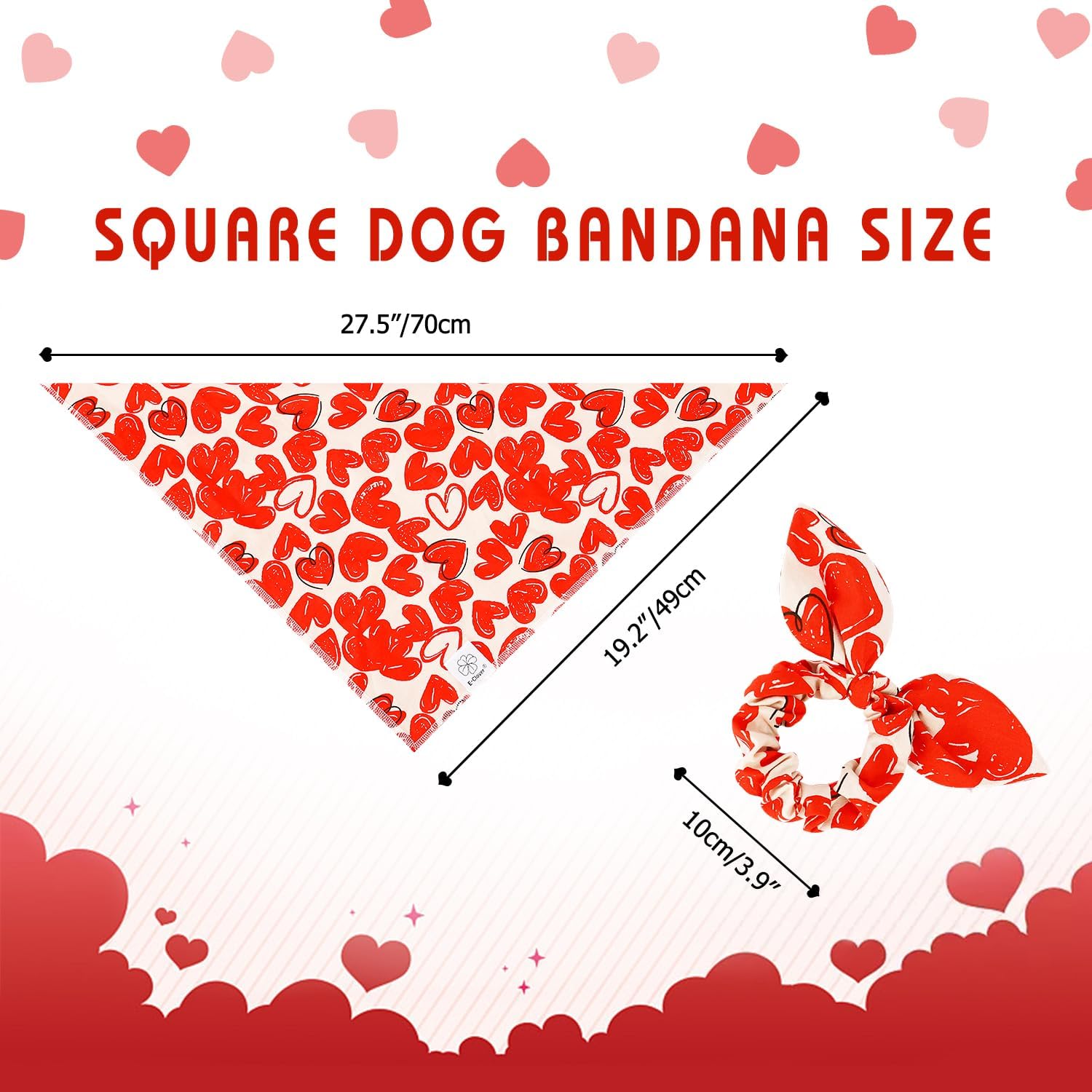 • Valentines Day Dog Bandana Size:19.2''*19.2'' (49cm *49cm). The adjustable holiday dog bandanas fit pet neck size up to 21.2'' (54cm). You can roll the square dog mothers day bandana a couple of times to fit your dog & cat. Please measure your pet's neck before buying. Matched hair scrunchie is one size fits all.
