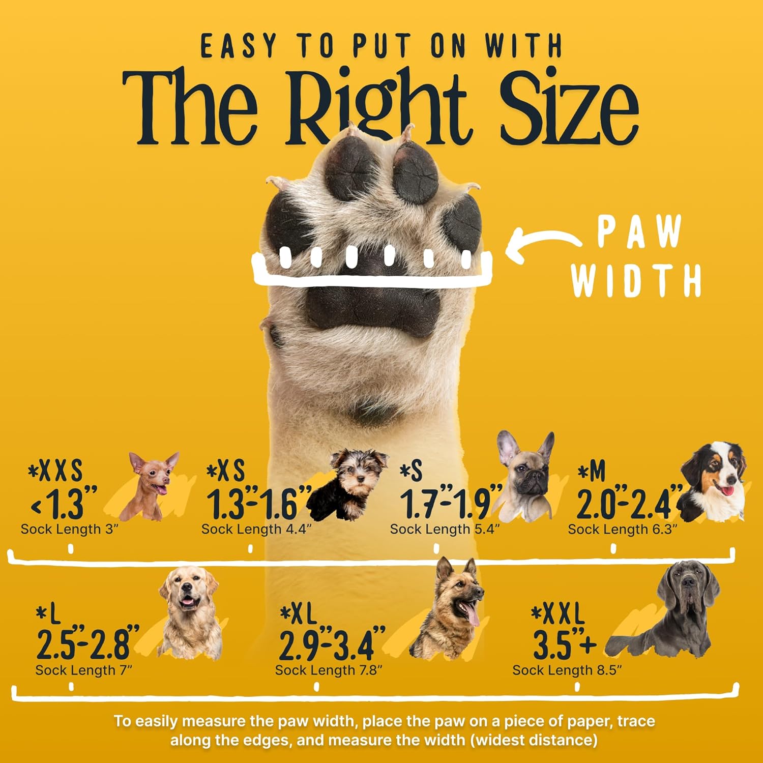 • XL Size: 2.9" - 3.4" paw width. Please make sure to measure your pet while they are standing with weight on paw. Includes 4 dog grip socks made of elastic cotton nylon fabric that stretches.