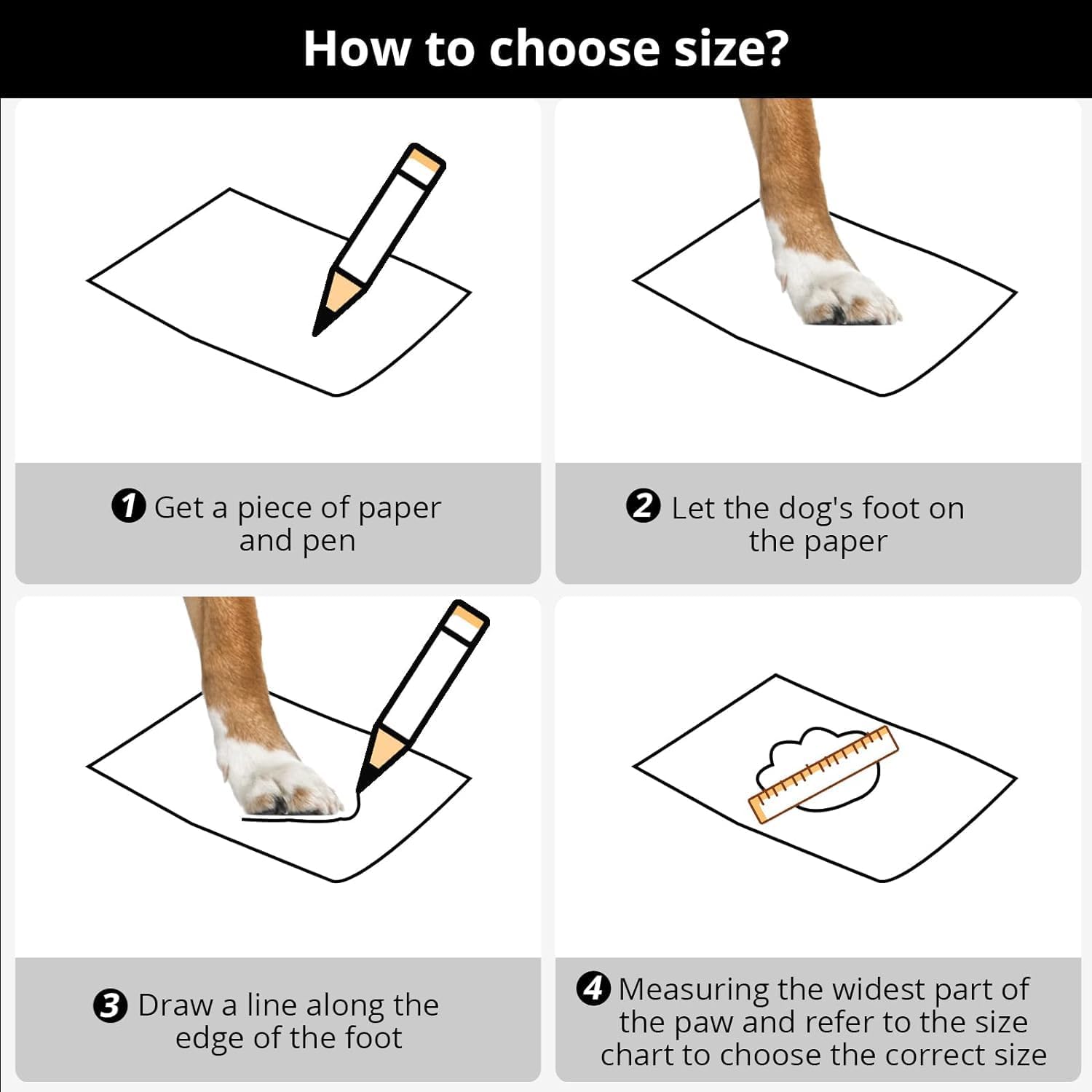 • 【Size 3】: 1.96''x2.36''(W*L).for 16-24(lbs).Great for all kinds of dogs.Place your pet's paws on paper; Mark the width of the paws, including the toes and nails,Except for the hair;Please refer to the picture size chart to choose the right size for your puppy.