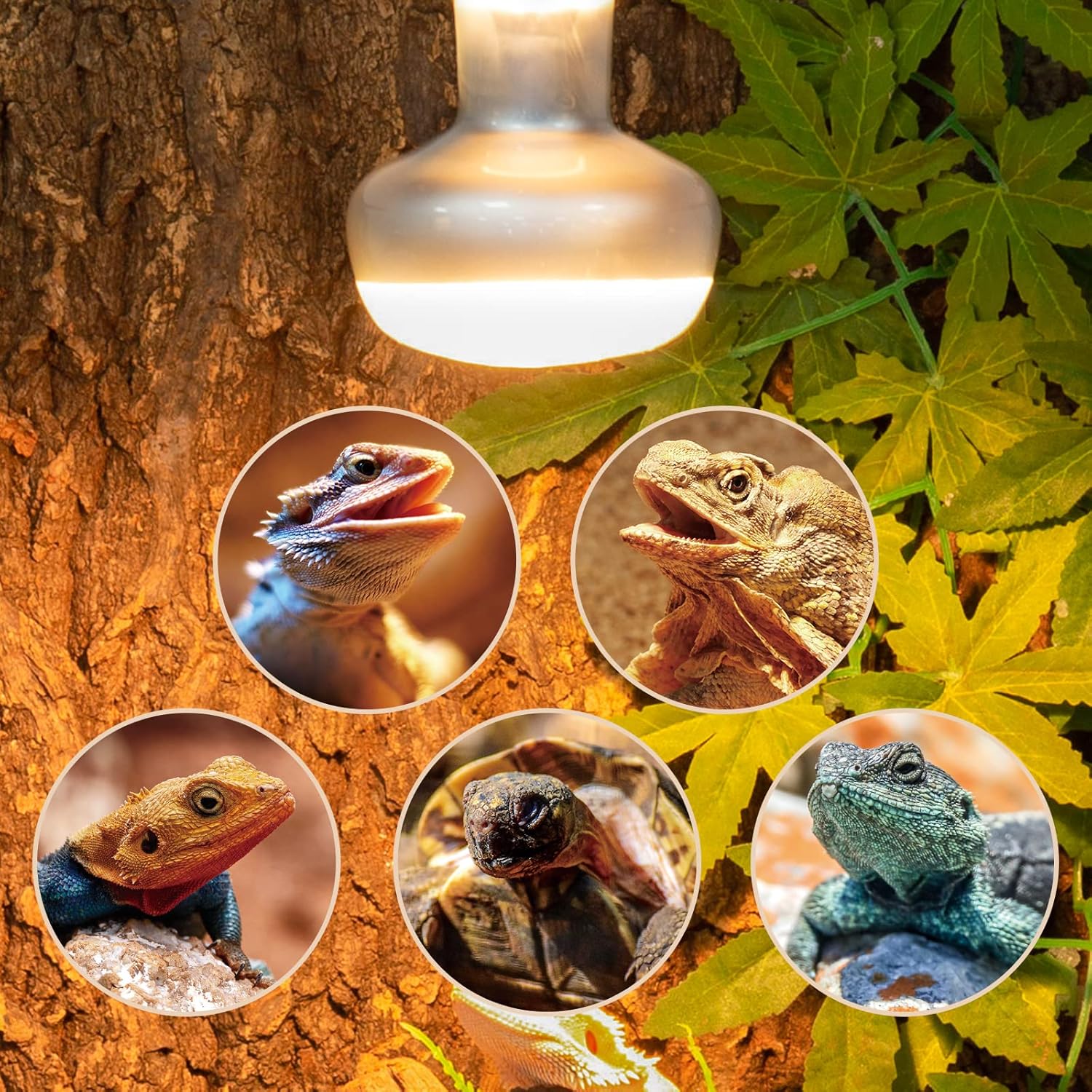 - ăSimulating Natural LightăThis heat lamp simulates natural sunrise and sunset to achieve even and quick heating and bring your pet back to nature. The reptile heat bulb provides soft heat light and UVA for reptile living, promote the appetite of your pet, create a healthy environment for reptiles, ensure their healthy and natural growth.