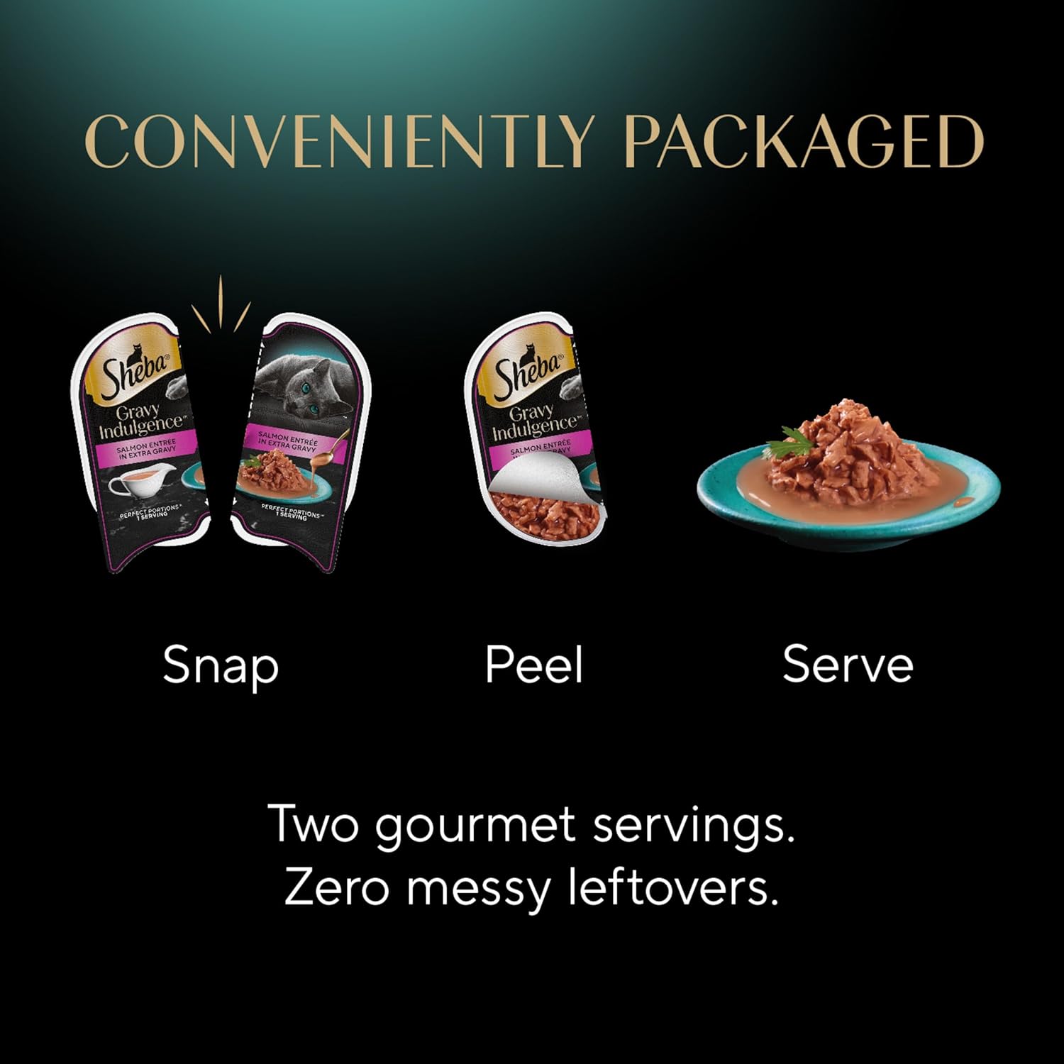 Sheba Gravy Indulgence Adult Wet Cat Food Salmon Entree in Extra Gravy, 2.6 oz. Twin-Pack Trays (24 Count, 48 Servings)