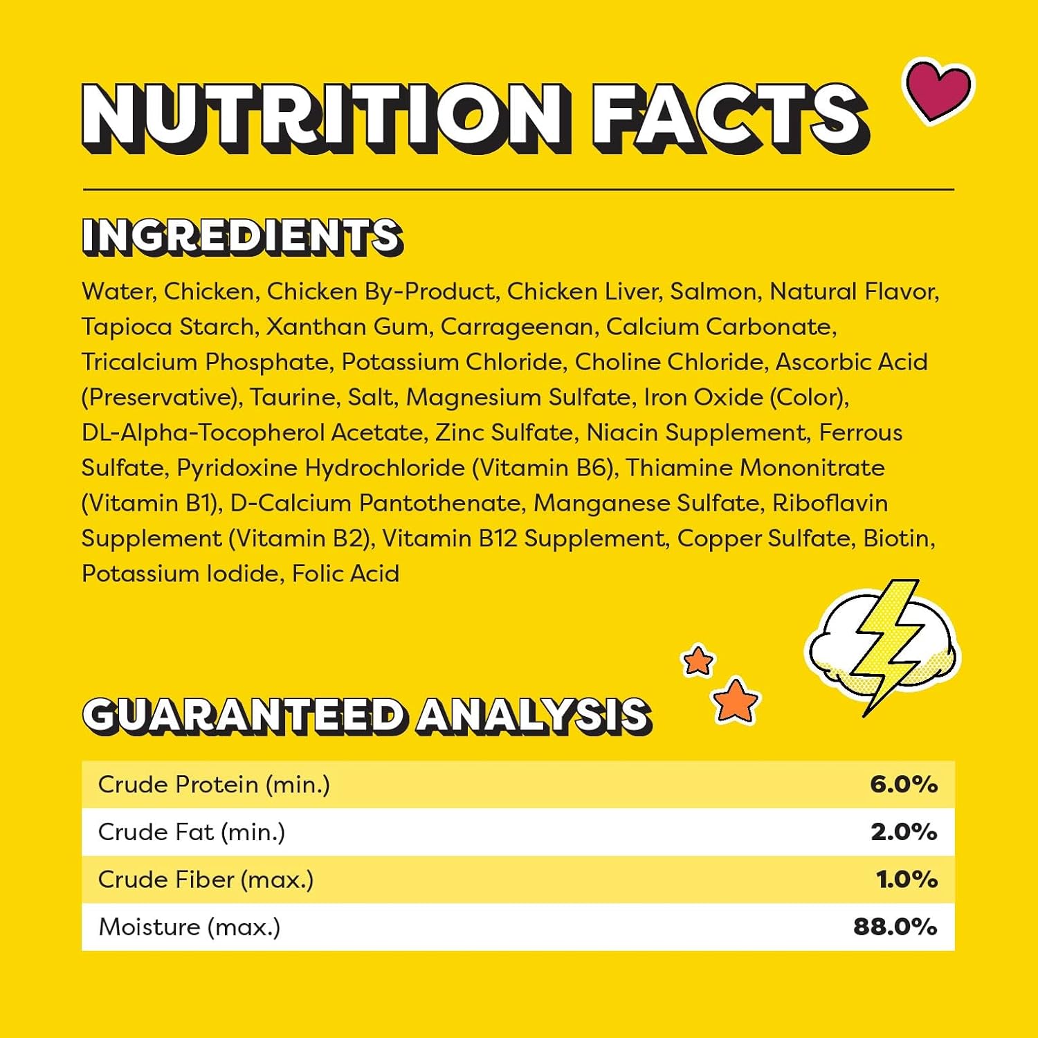 - Made with Real Chicken and Salmon: Your favorite feline will enjoy two irresistible flavors in one lickable spoon