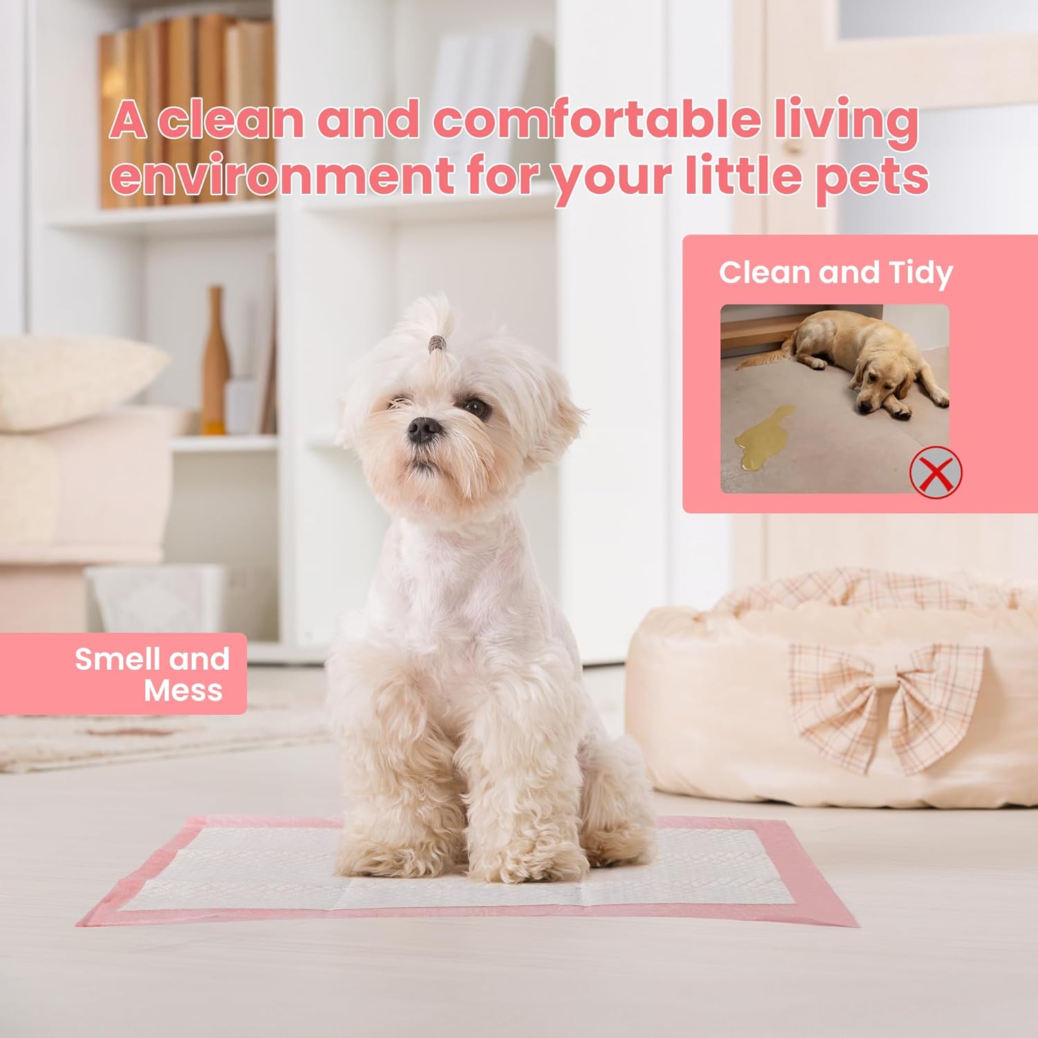 Pet Toilet Training Pads 100Count Disposable Puppy Pee Pads 18" x 13" for Dogs, Ultra Absorbent|Quick Dry|Leak-Proof Pet Potty Pads for Dog, Cat, Rabbits and Guinea Pigs (Pink)