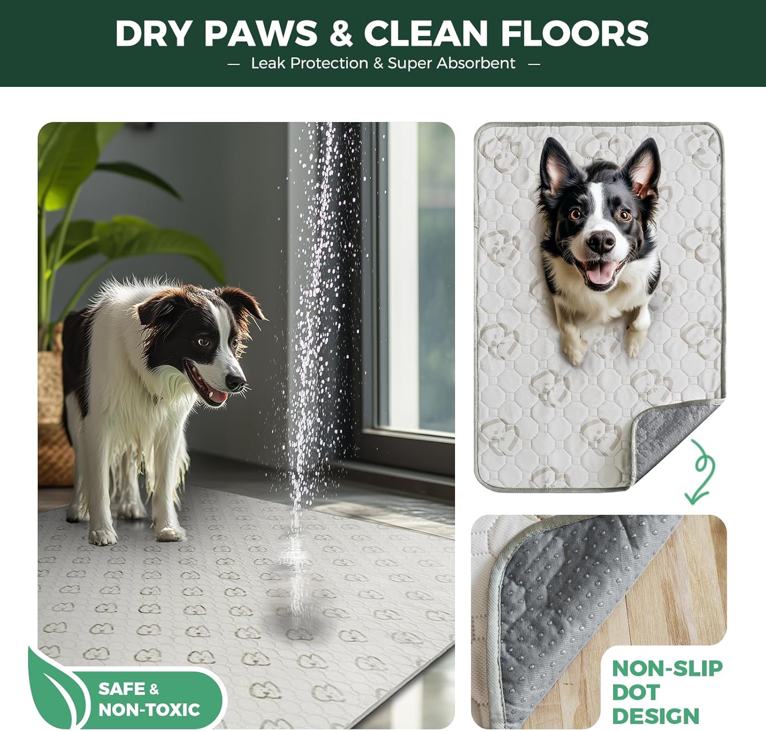 • Over 100x Reusable & Eco-friendly: Our puppy mats are machine washable and built to last over 100 uses. These reusable puppy pads for dogs are an eco-friendly, cost-saving choice — our dog training pad costs 5 times less per use than disposables.