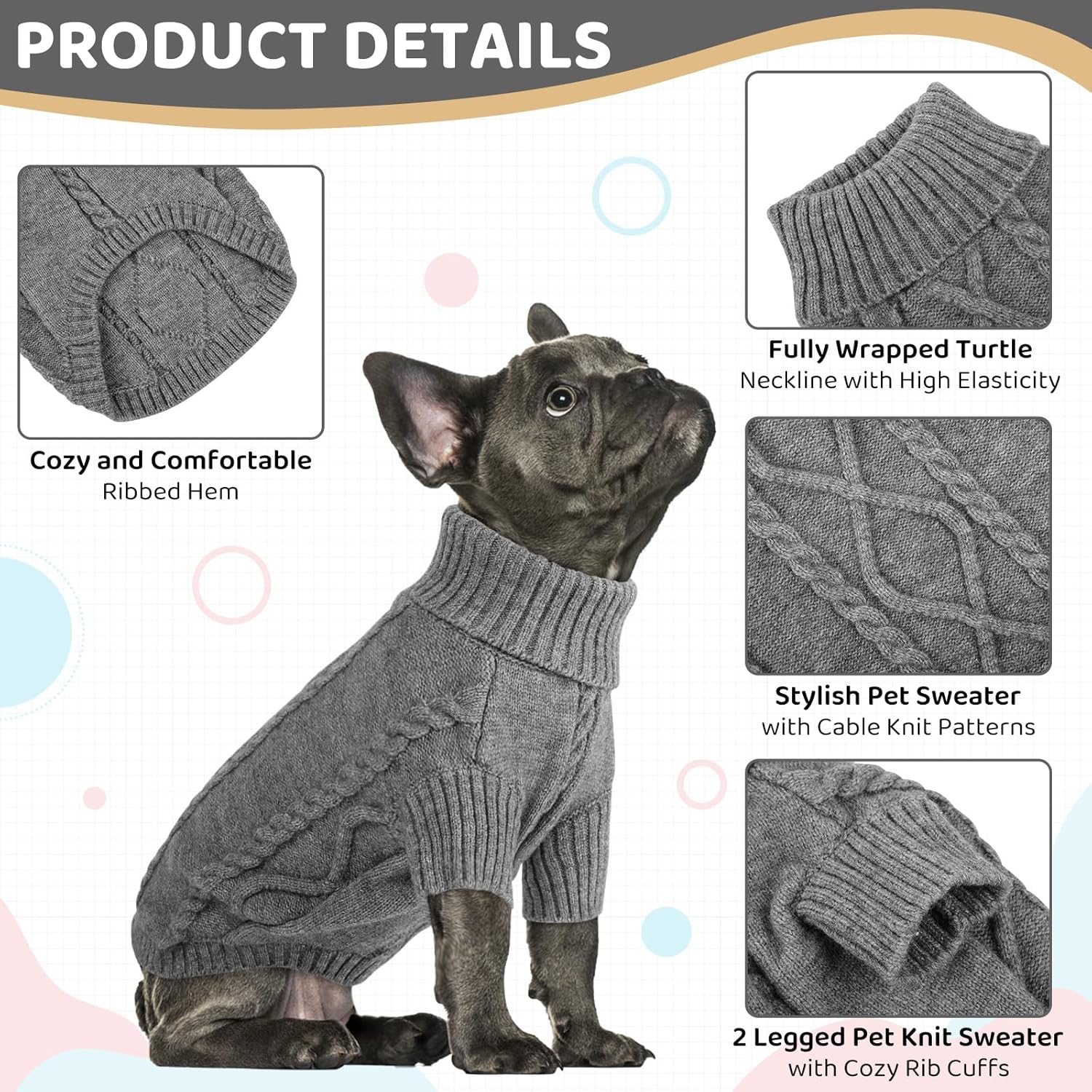 • THICK & WARM KNIT SWEATER: The dog's turtleneck large pullover chunky knitted sweater for large size dogs is made of high density acrylic yarn that is comfortable, ultra-soft, warm and easy to care. The cable knit sweater for extra large dogs is the cute winter clothes for your big dogs.