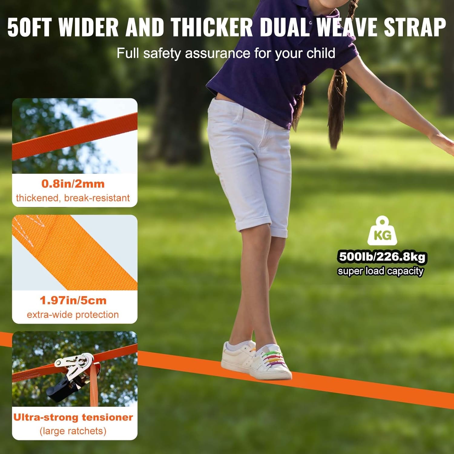VEVOR Ninja Warrior Obstacle Course for Kids, 1 x 50 ft Weatherproof Slacklines, 500lbs Weight Capacity Monkey Line, Outdoor Playset Equipment, Backyard Toys Training Equipment Set with 10 Obstacles