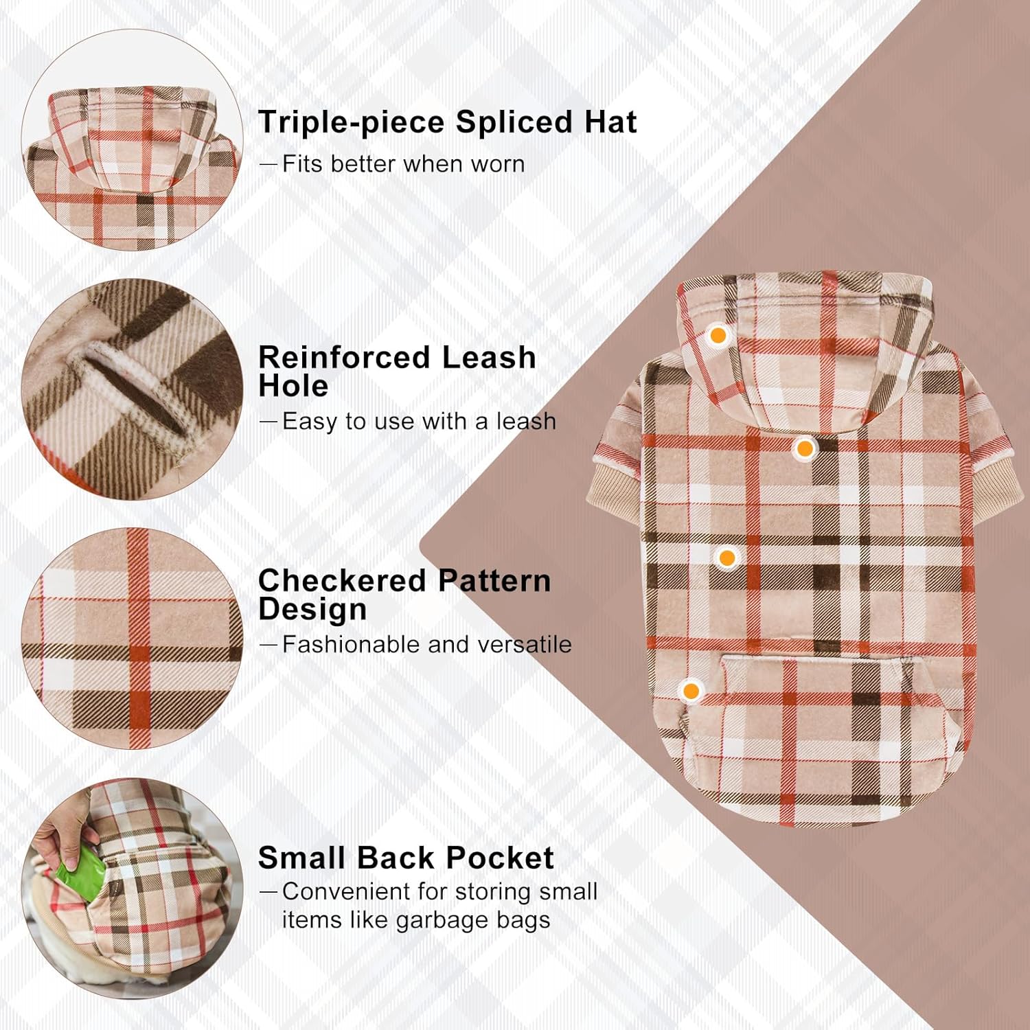 • Stylish & Practical Look: This plaid dog hoodie boasts a classic vintage check pattern that makes your pup stand out! Includes a handy back pocket for storing treats, toys, or waste bags. reinforced leash hole adds safety and durability—perfect for walks, running, hiking, training, or festive occasions like Christmas, Thanksgiving, photo shoots, and birthday parties.