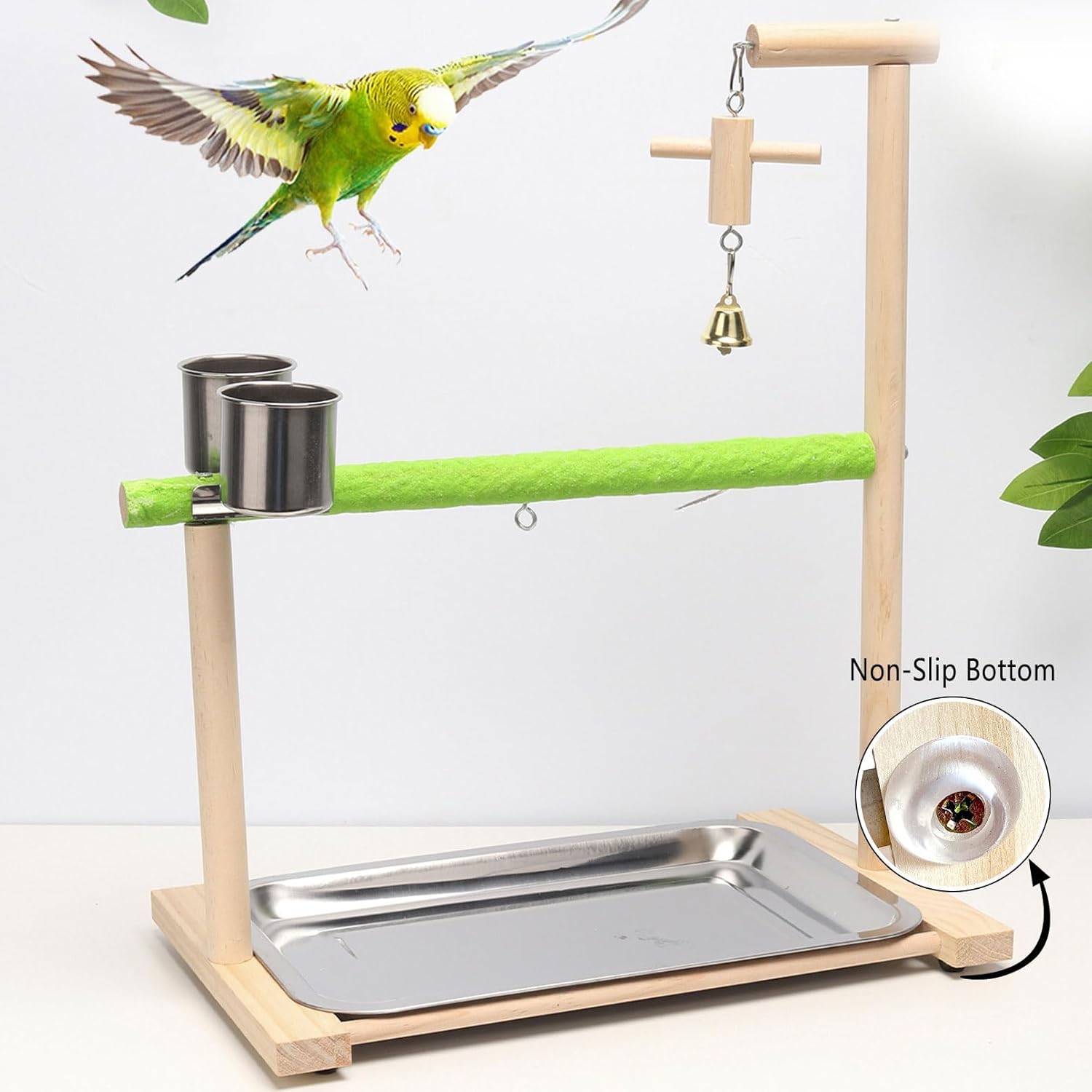 • 【Thoughtful and Practical Design】: The bird play stand features two stainless steel cups for your bird to enjoy food and water after playtime. Additionally, the stainless steel tray at the bottom of the bird play stand provides a convenient and easy-to-clean surface, ensuring a clean and entertaining environment for your bird.