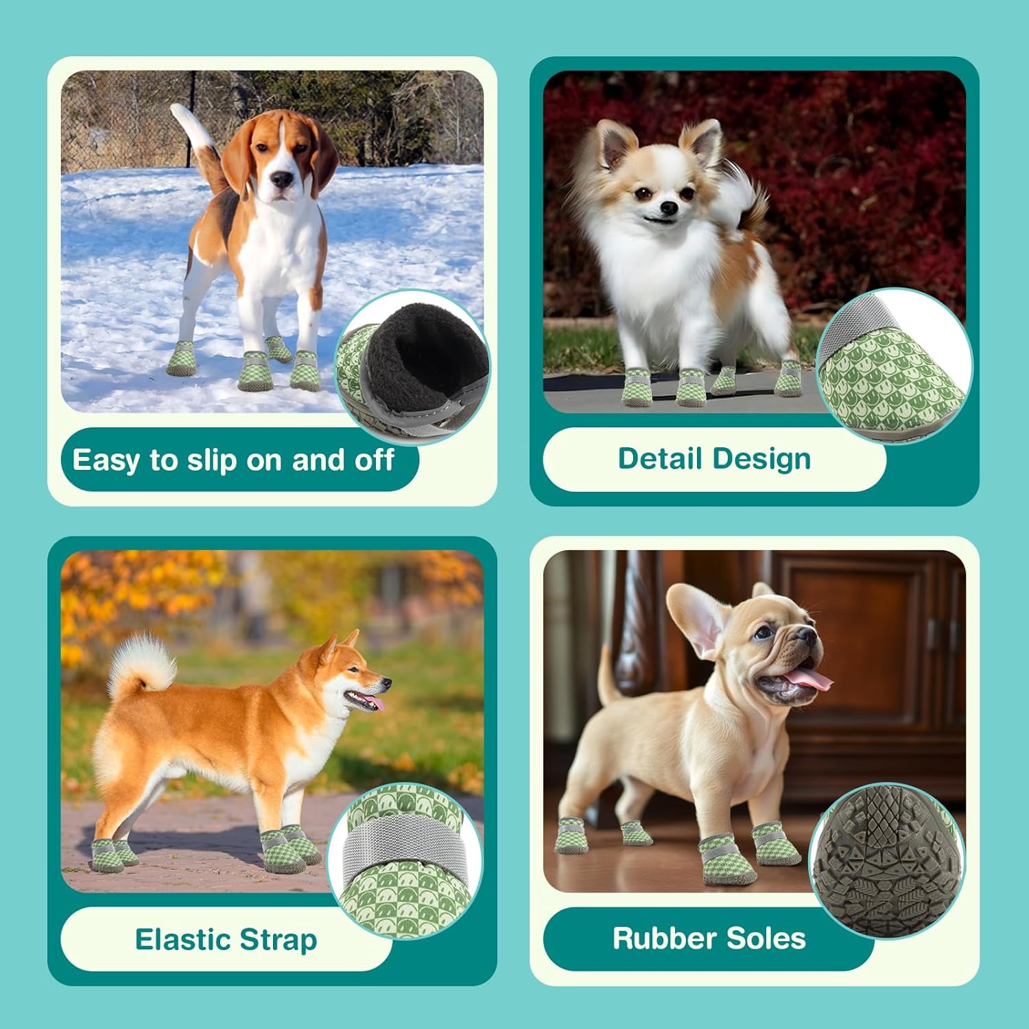 Small Dog Shoes, Breathable Puppy Boots & Paw Protectors for Winter Snow, Summer Hot Pavement, Dog Booties with Anti-Slip Rubber Soles for Hardwood Floors Green Size 4