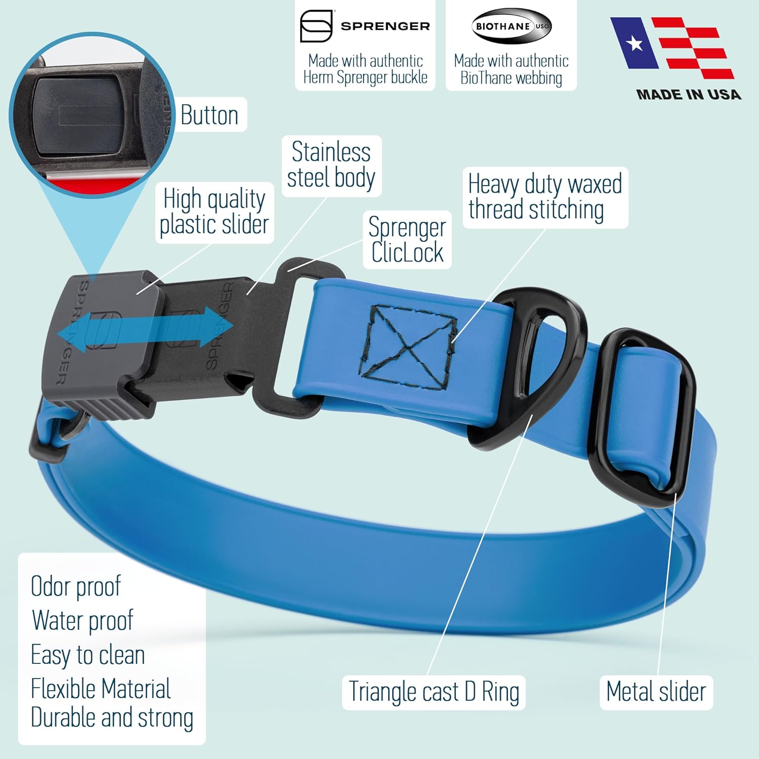 Dogline Biothane Waterproof Dog Collar with Herm Sprenger Stainless Steel Quick Release Buckle – Heavy Duty Tactical Durable Collar for Dogs – Comfortable and Safe Pet Collar, W 3/4" L 12-19", Blue