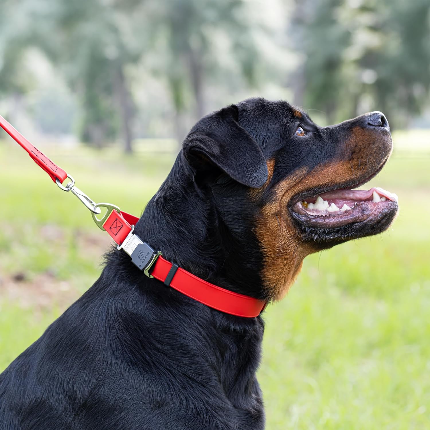 Dogline Biothane Waterproof Dog Collar with Herm Sprenger Stainless Steel Quick Release Buckle – Heavy Duty Tactical Durable Collar for Dogs – Comfortable and Safe Pet Collar, W 1" L 15-25", Red
