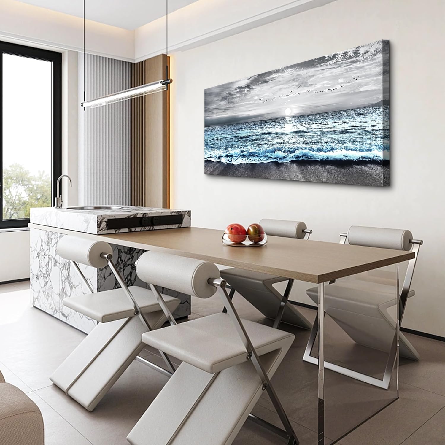 Lapremoly Black And White Beach Wall Painting Canvas Wall Art For Living Room Large Wall Decor For Bedroom Office Wall Decorations Blue Ocean Sea Wave landscape Pictures Artwork Posters Home Decor
