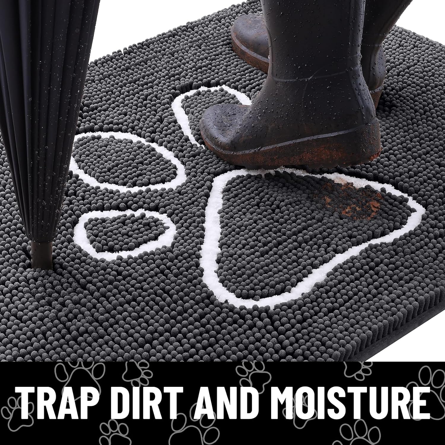 Smiry Dog Door Mat for Muddy Paws, Absorbent Dirt Trapper Non Slip Quick Dry Washable Chenille Mat for Mud Dogs, Entry Rug for Indoor and Outdoor (40x32 Inches, Dark Grey and White)