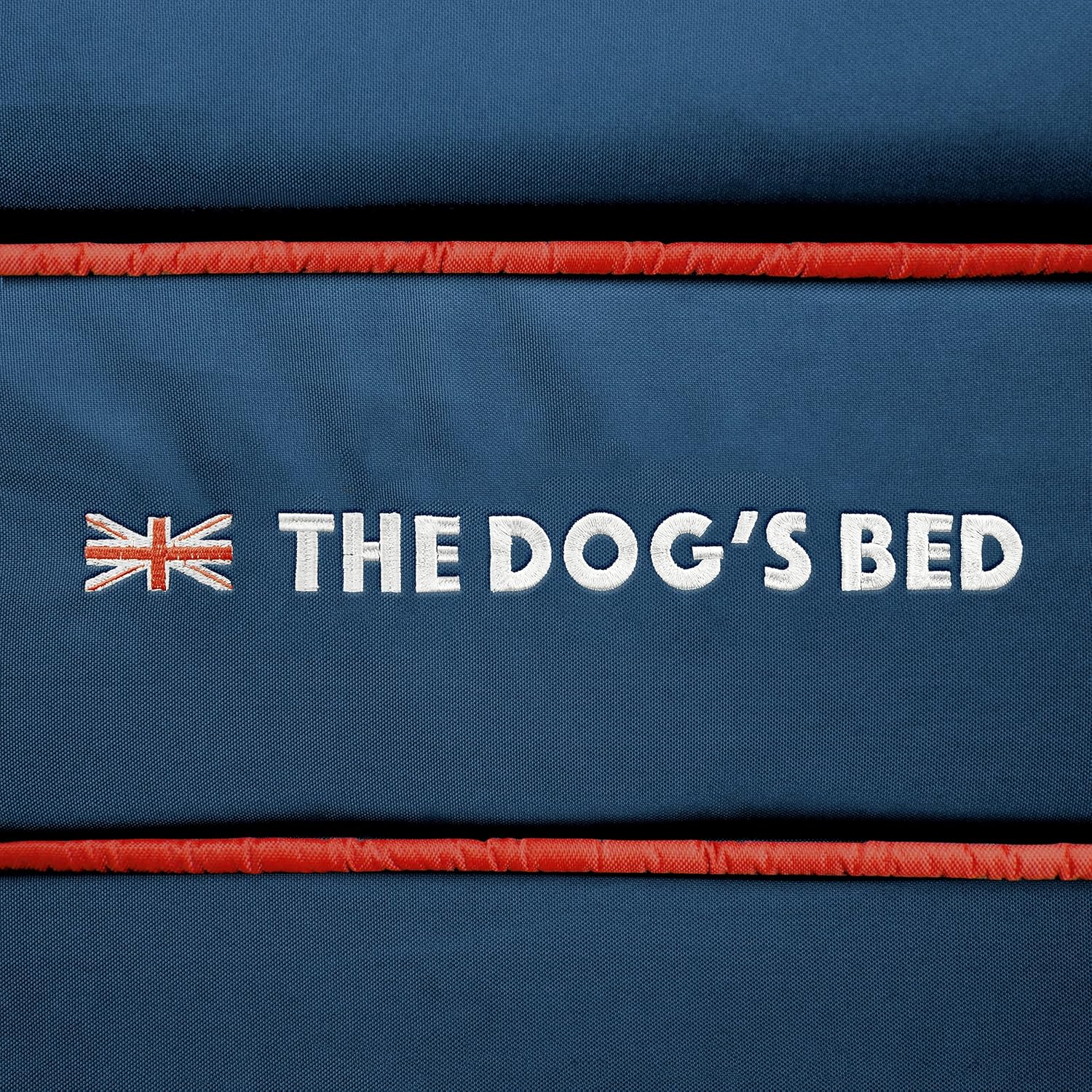 - XL Blue Oxford with Red Trim UK Flag Dog Bed (Easy Clean Cover) 46” x 28” x 6” (+3.5" Headrest) waterproof orthopedic headrest dog bed. Solid 2” high density, orthopedic memory foam over a solid 4” base of high stability support foam with covers designed so that your bed fits your home decor seamlessly and your dog can stay close to your family