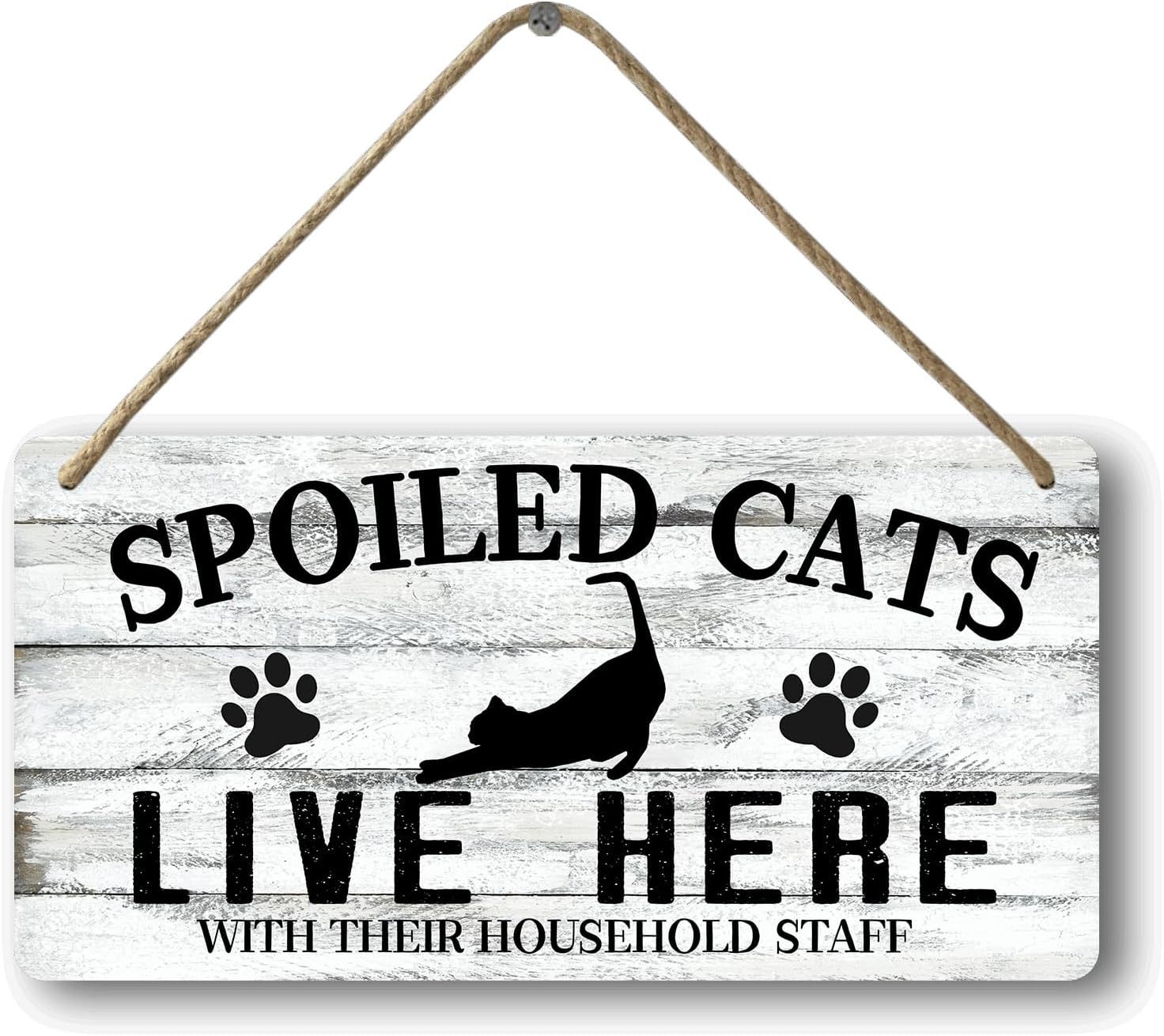 - SIZE FOR CAT WALL DECOR : 12 x 6 inch personalized text " Spoiled Cats Live Here " to add fun and color to your cat room.