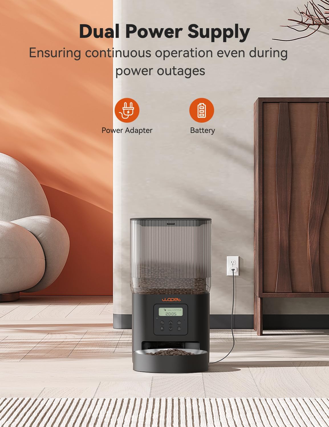 WOPET Automatic Cat Feeder, WiFi Dog Feeder with APP Control for Remote Feeding, Automatic Cat Food Dispenser with 10S Voice Record,1-10 Meals Per Day for Cats and Dogs (Black-Standard)